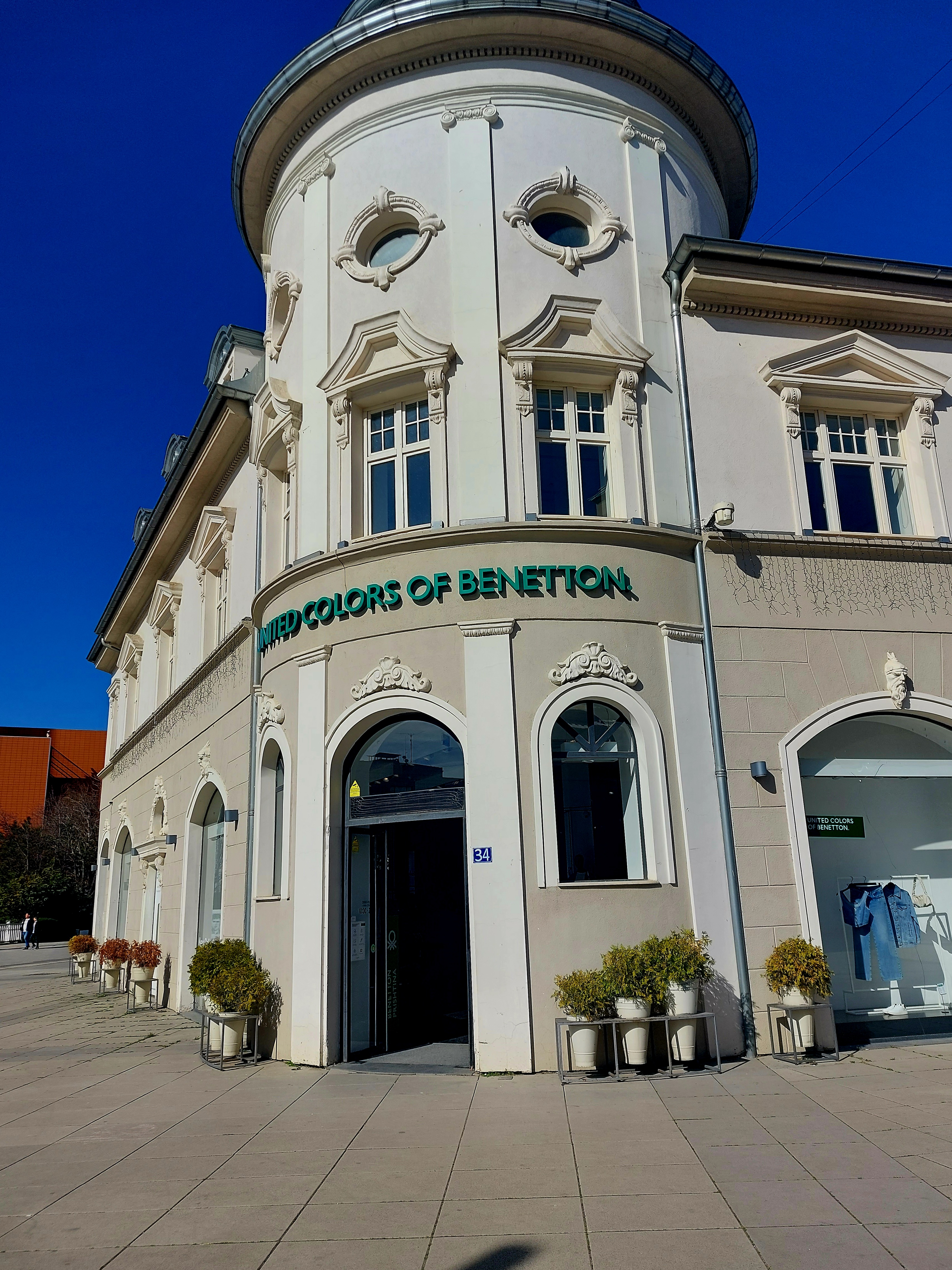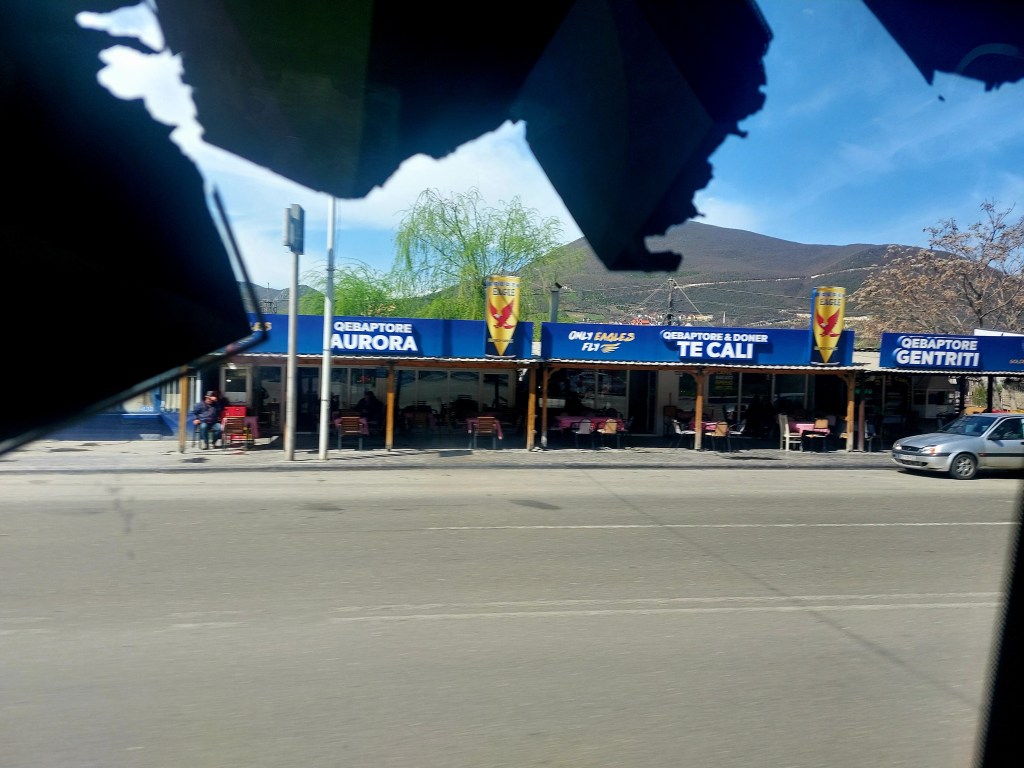 Back on the coach, here’s our first view of Kosovo, apparently an Aldi. Appropriately, the first thing you notice is the Albanian eagle.