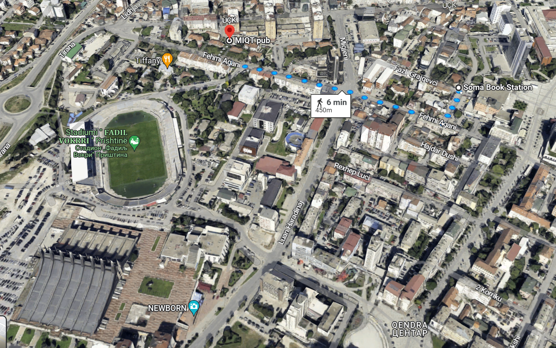 Coffee shops and bars blur into one in Pristina. In the stretch of a dozen or so modern looking places just south of what’s left of the old bazaar macchiato interchanges with Pils, a fatal combination for the bladder in my experience.