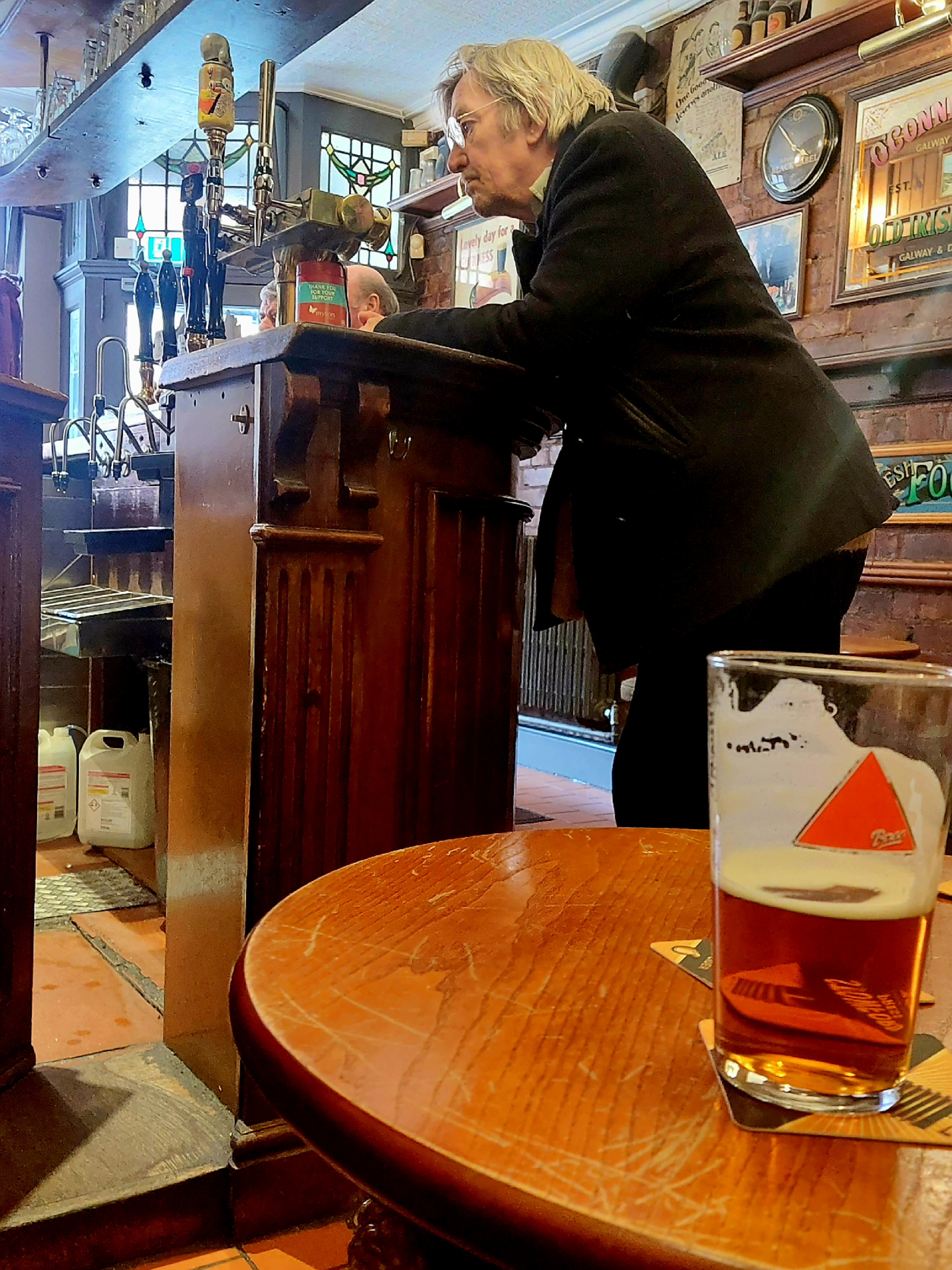I had a moment to ponder phoning the Wickingman to ask him as the barperson was otherwise engaged, probably putting Captain Beefheart on the jukebox. She suddenly appeared, as cheery and positive as young people inevitably are.