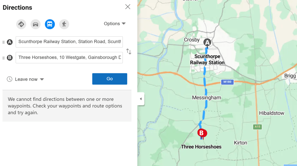 Another pub that they’ve put in the Guide because there’s no way BRPA can get there on public transport, though he could walk from Scunthorpe if he’s not distracted by Scunny’s embryonic* craft scene.
