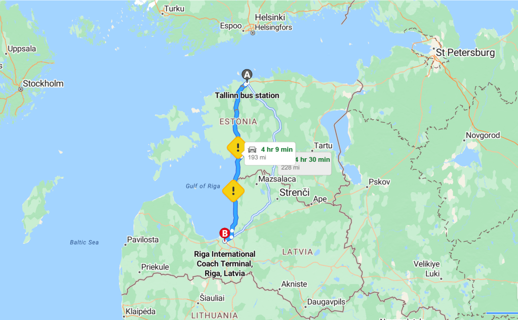 Day 3 of the Baltic Explorer, and a 4:20 hr trip straight south from Tallinn to Riga through an endless forest of newly planted birch and hazel. About £20 each on a Lux coach that didn’t quite mean “luxury” but at least had intermittent WiFi and leg room.