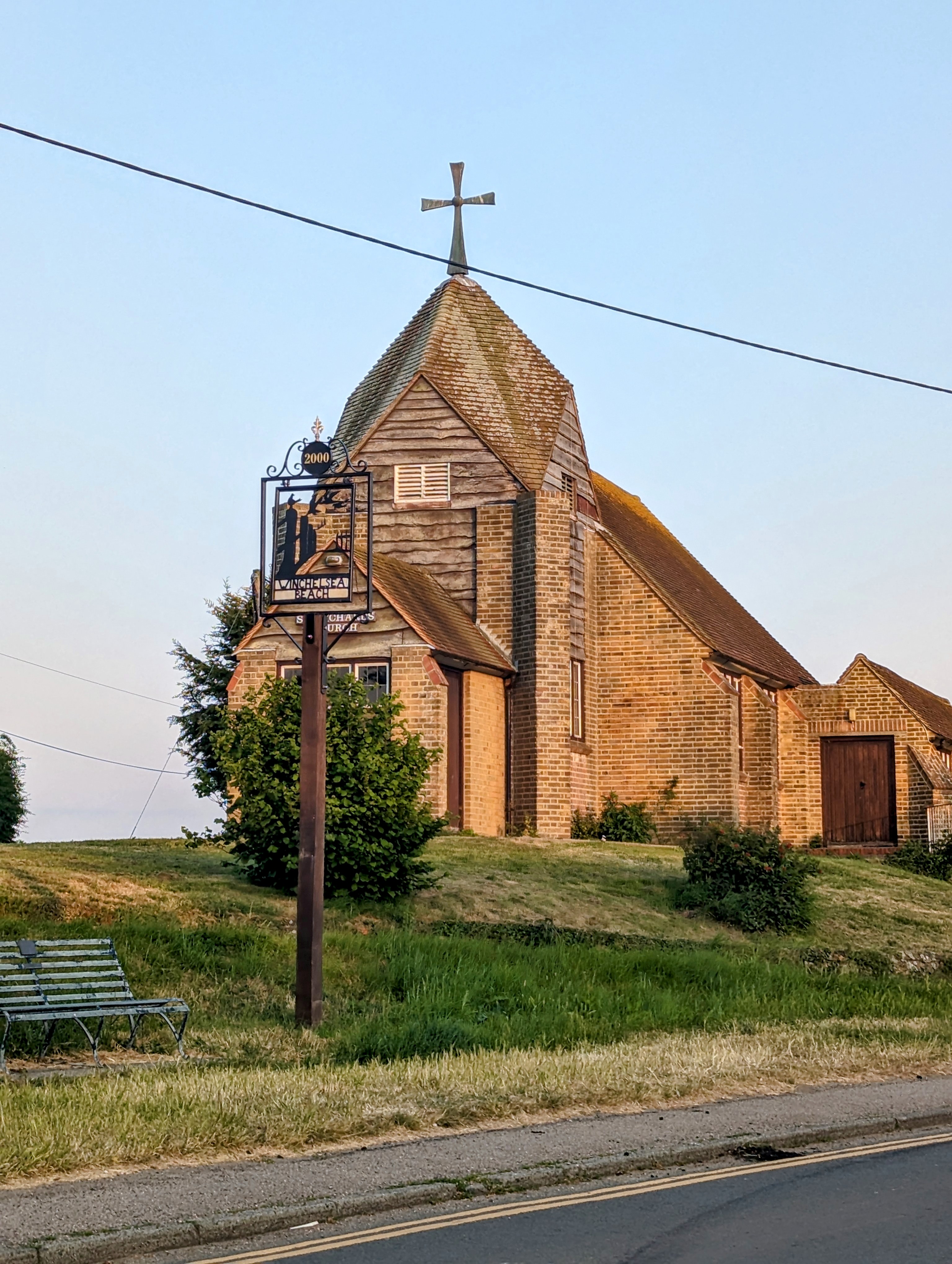 It’s an hour to Winchelsea Beach’s caravan sites, served by a chippy, co-op, closed church (come on, Spoons)