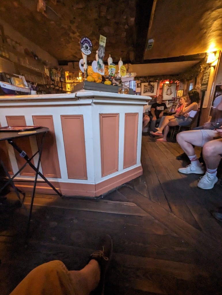 We managed a pint of Harvey’s at the Old Bell, and then fancied a late seafood lunch at a smart place with a nice menu, but were told firmly that “Lunch. Finishes. At two.