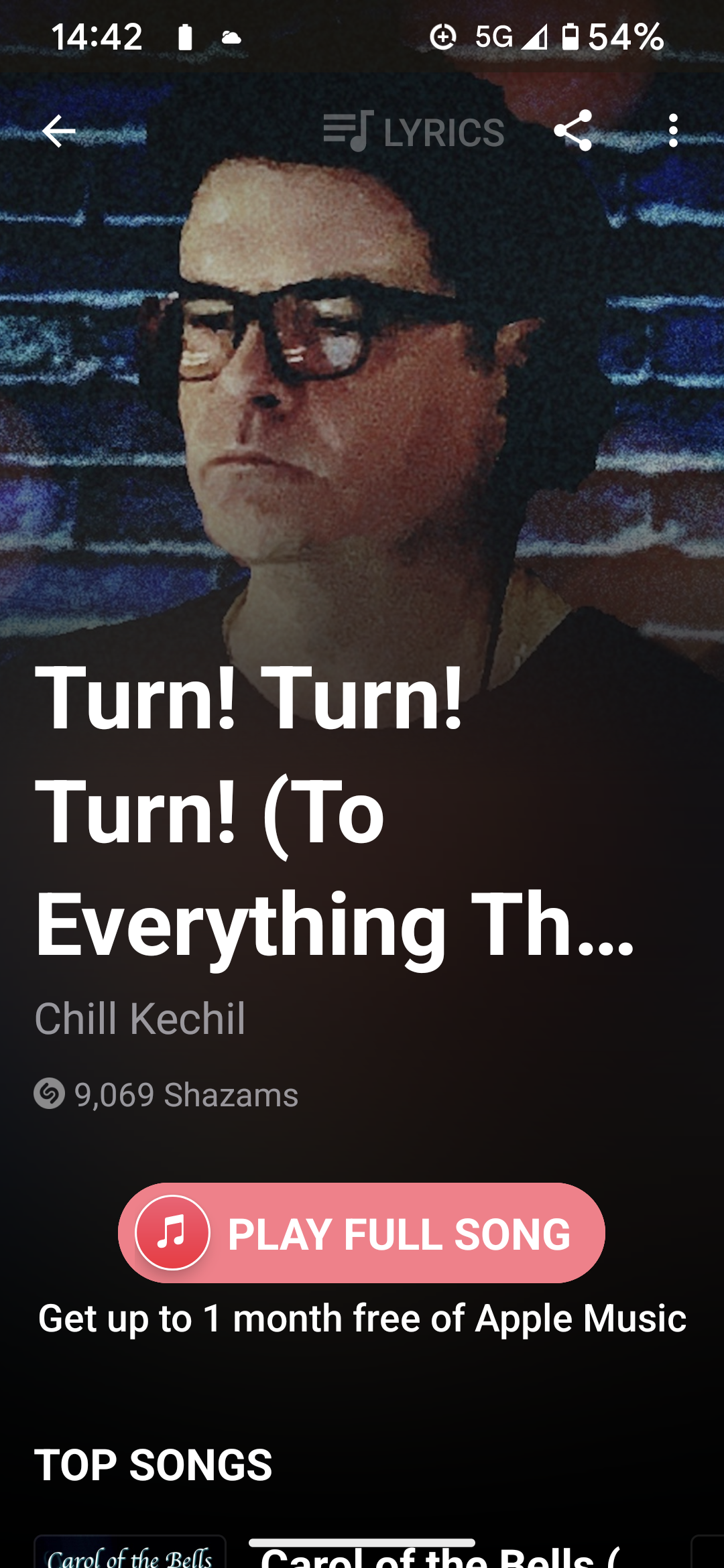 “A time to gather stones together“, which I guess is perfect for the Carlton. Oddly, Shazam insisted it was the dance remix of the Byrds I was listening to.