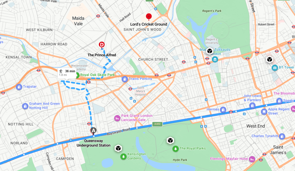 Pub No. 4 was a mere 5 minutes (Retired Martin strides) from the Warwick Castle, taking you into the heart of Maida Vale/Little Venice/whatever, past the wonderful church.