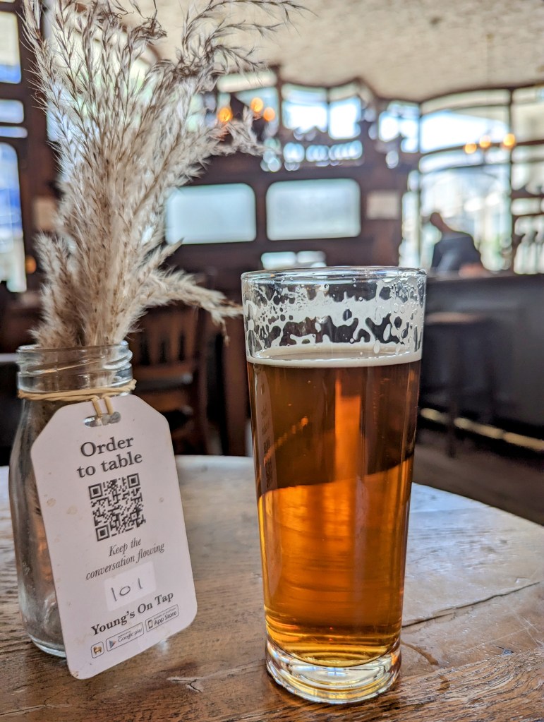 You’re faced with keg taps at the bar, so I had to guess the handpumps in the room beyond would have a Young’s Ordinary on and indeed they did. I bet the one on the left is a Redemption.