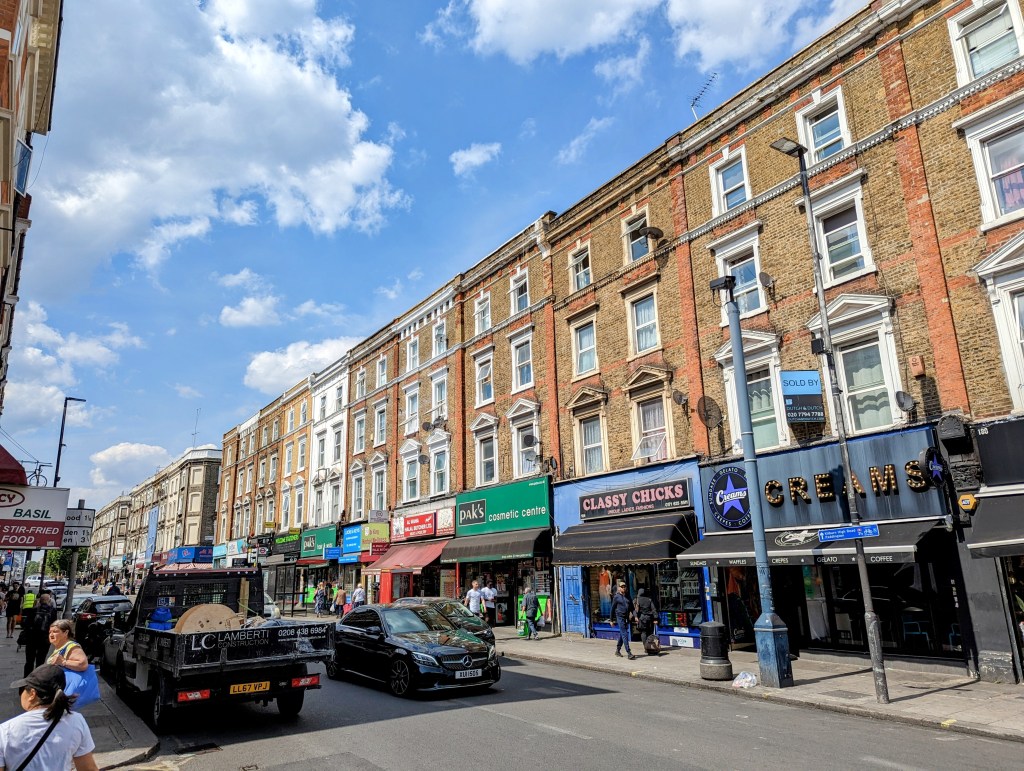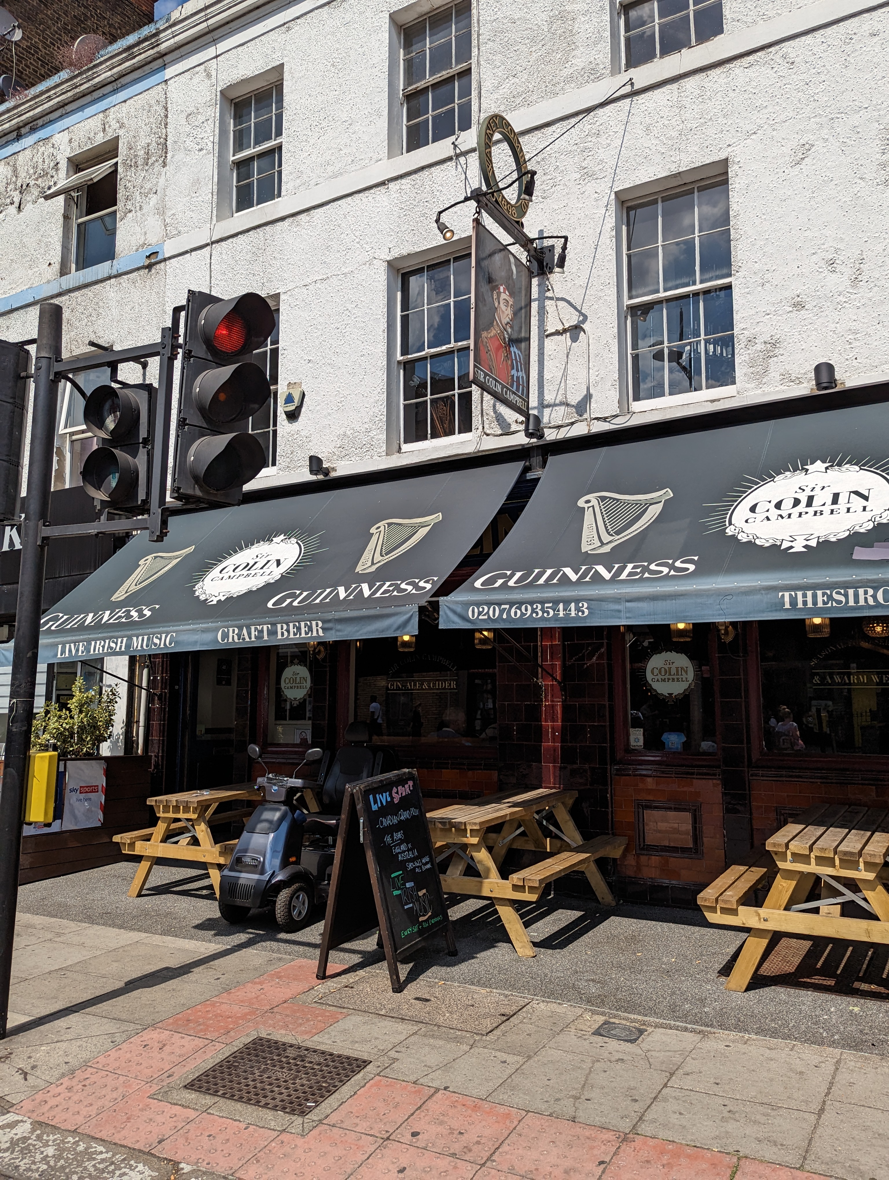 and then up a mile of mini supermarkets, greengrocers, and a run of largely keg pubs you assume are all Irish boozers but can’t be sure.