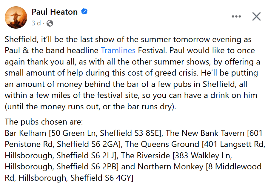 A nice gesture from Paul Heaton. He’s done this before, I believe.