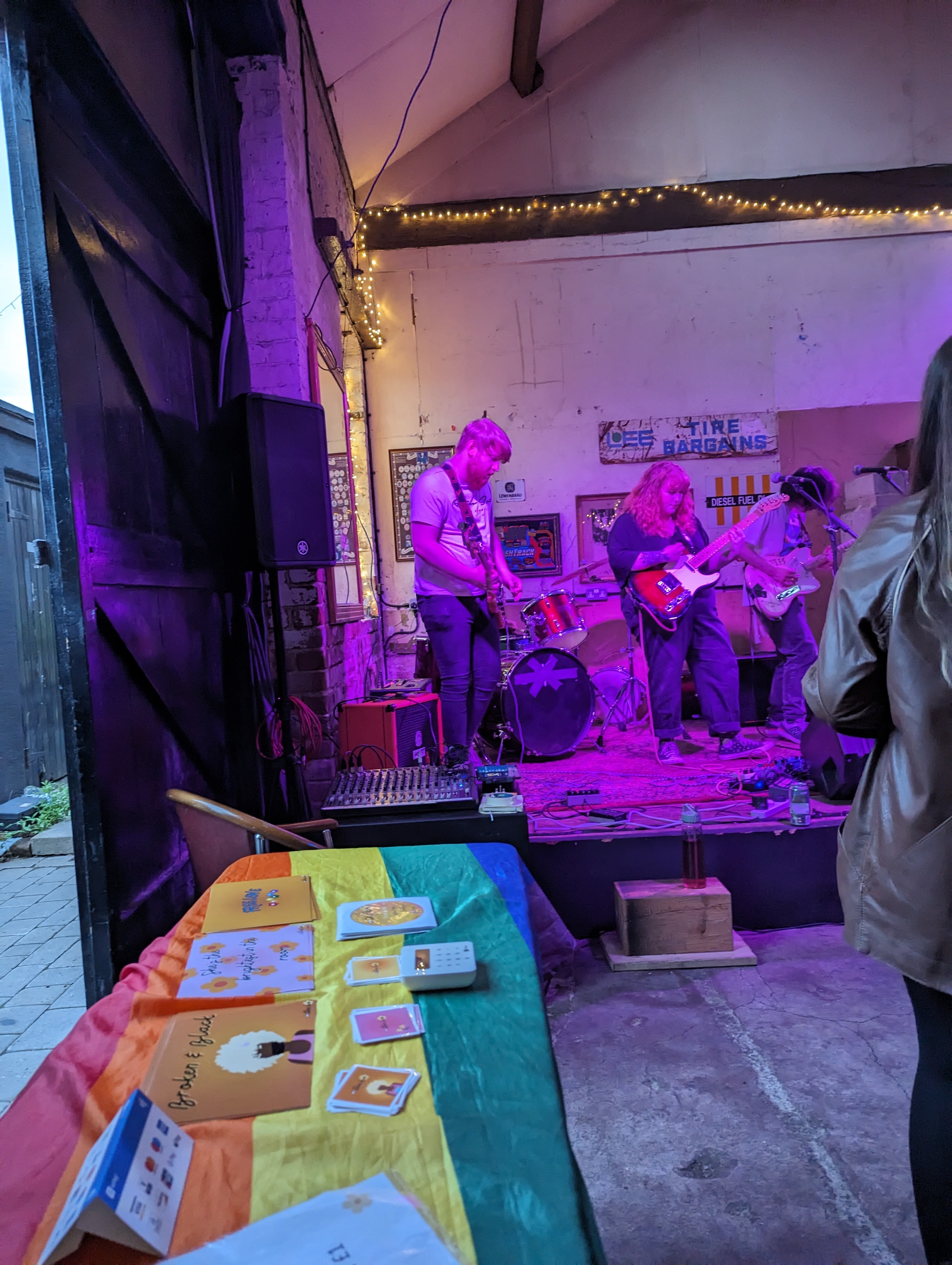 Airport Dad have guitars with “No to Tories” written on them and nothing to sell yet. They were great, even if they did try to get us to call out “Airport”, “Dad”.
