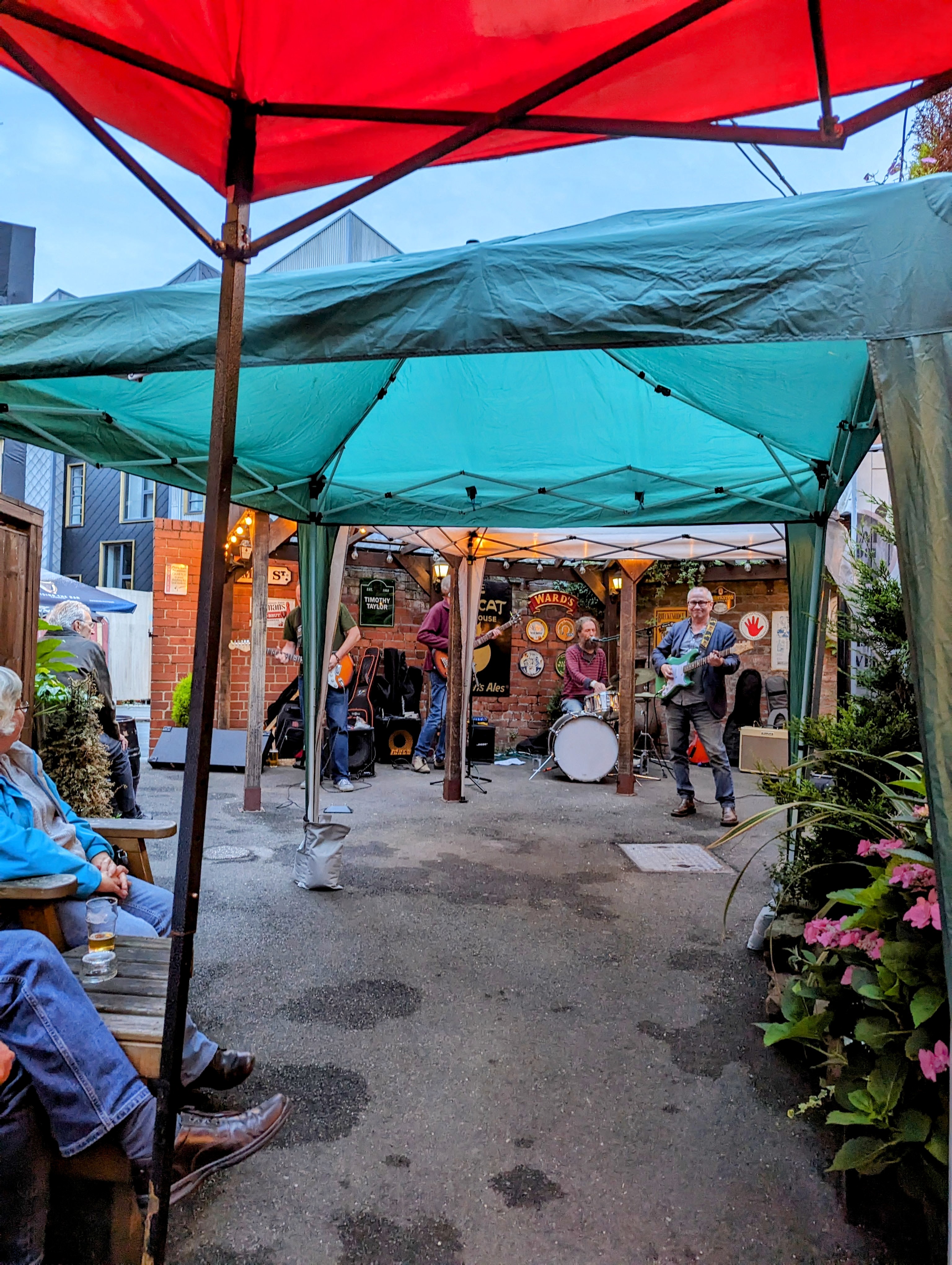 The Cat had live music, but no spare seating, and the act was what you’d call “CAMRA beer festival” so we moved on.