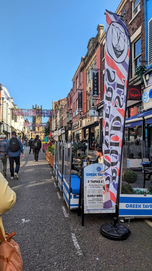 4:30pm, and pedestrianised Bold Street was heaving with early diners. One of the great foodie streets in the UK, and I’ve been to Carluke’s gastronomic quarter.