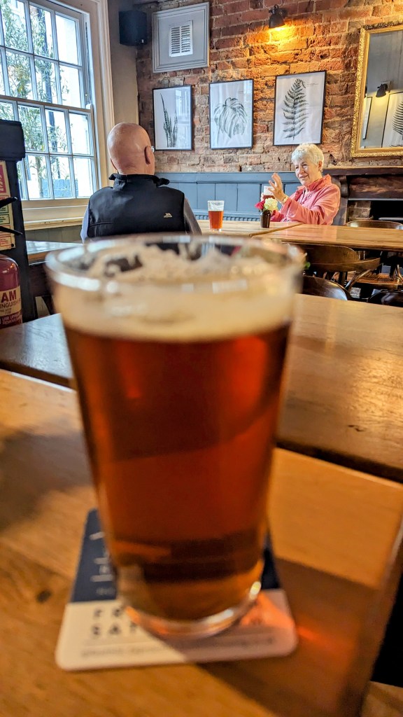 I thought I deserved a half in the George, the one next to the posh seafood place, as I’d been DES when ticking the place six years ago with the in-laws, and only really got to comment on the posh sofas and pubby feel.