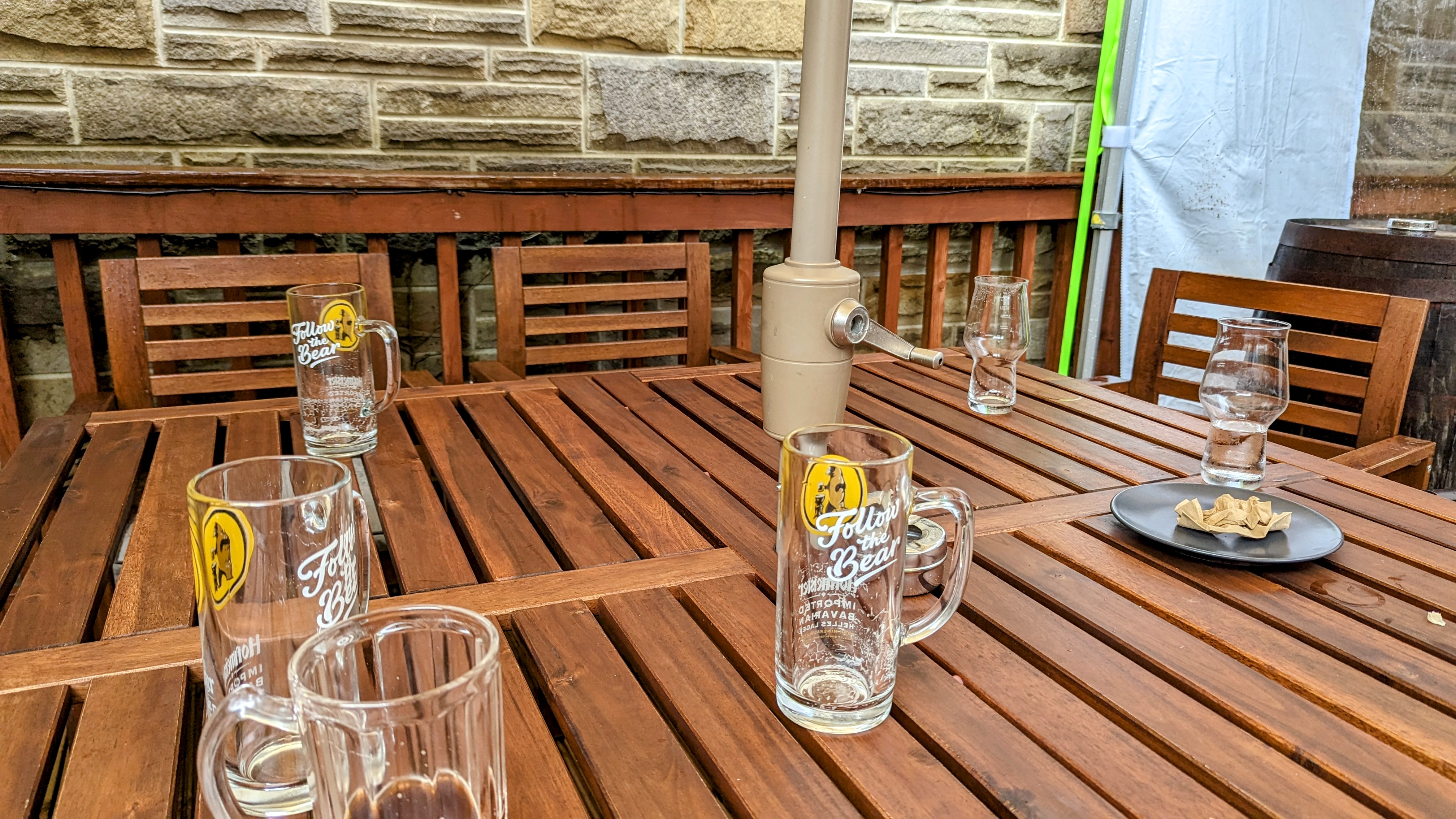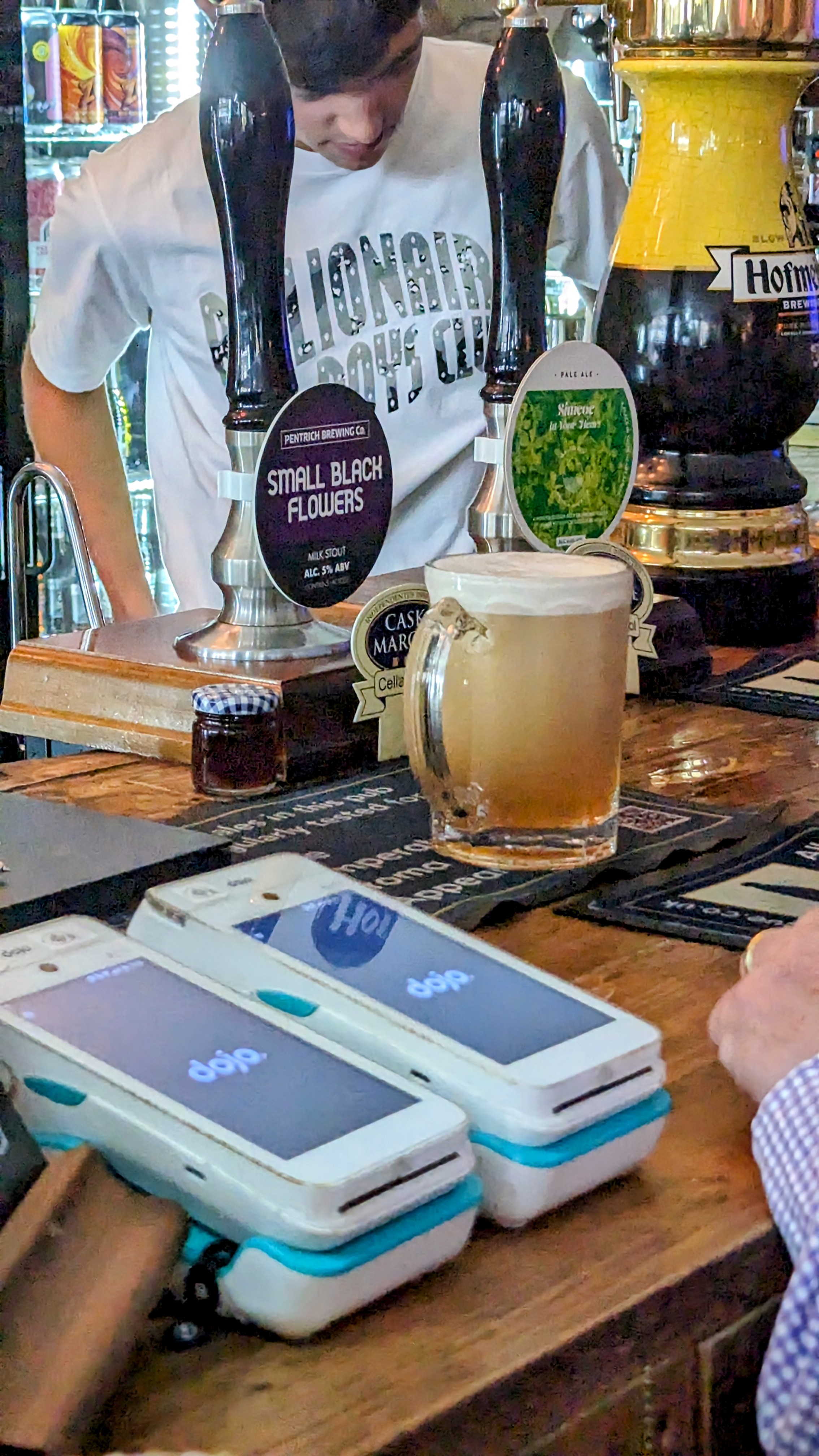 In fairness, there’s hardly space to spread out at the bar anyway, so I send Mrs RM off to find a table in the dry while I wait for a group of four to decide what they want. They all want Hofmeister.