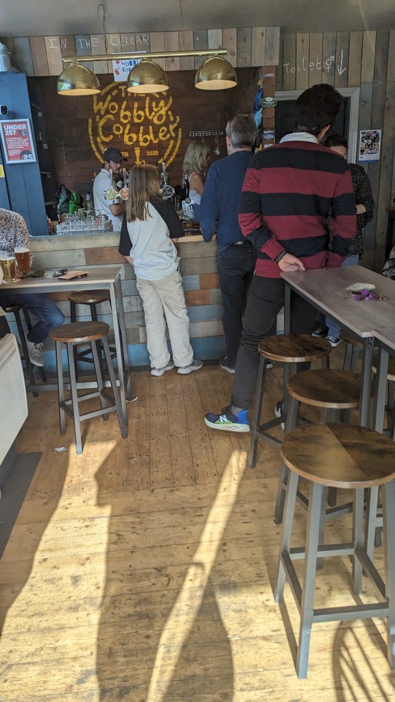 and inside it’s packed with the sort of crowd you get in a Cambridge free house on quiz night.