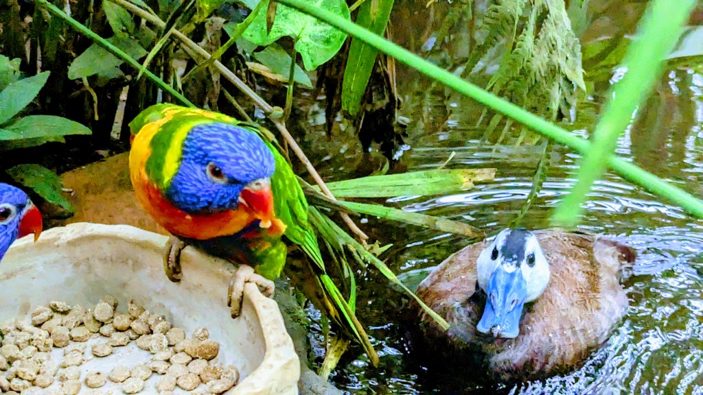 In the other hot(ter) house there are ducks and parrots. The one in the middle when I tried to steal some food for the duck, which is confirmation that you should NEVER GET INVOLVED IN ANIMAL DISPUTES.