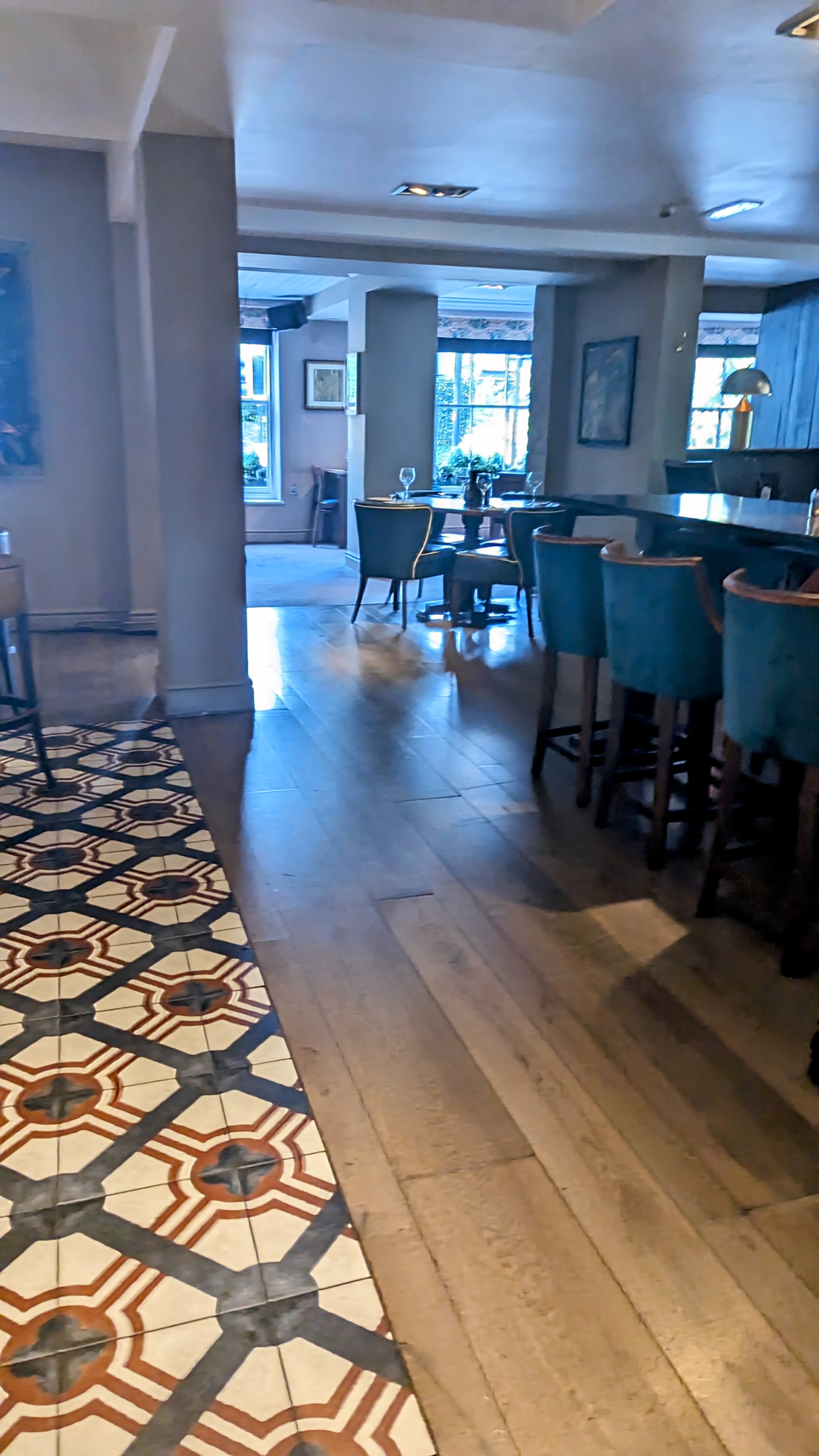 It’s actually a sunny day in Sheffield, and I don’t want to sit at the lone (high) table not set with serviette and large wine glass, so I take the last table overlooking the car park, and order my bellwether starter.