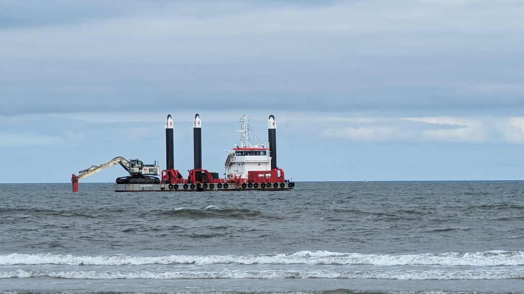 I’m not sure whether the dredger adds or subtracts confidence about the cleanliness of the water,
