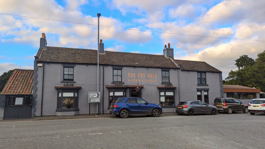 Oh look, there’s another pub. Well, the Fox Hole, where the word “pub” in “pub and restaurant” stretches the definition of the word to new extremes.