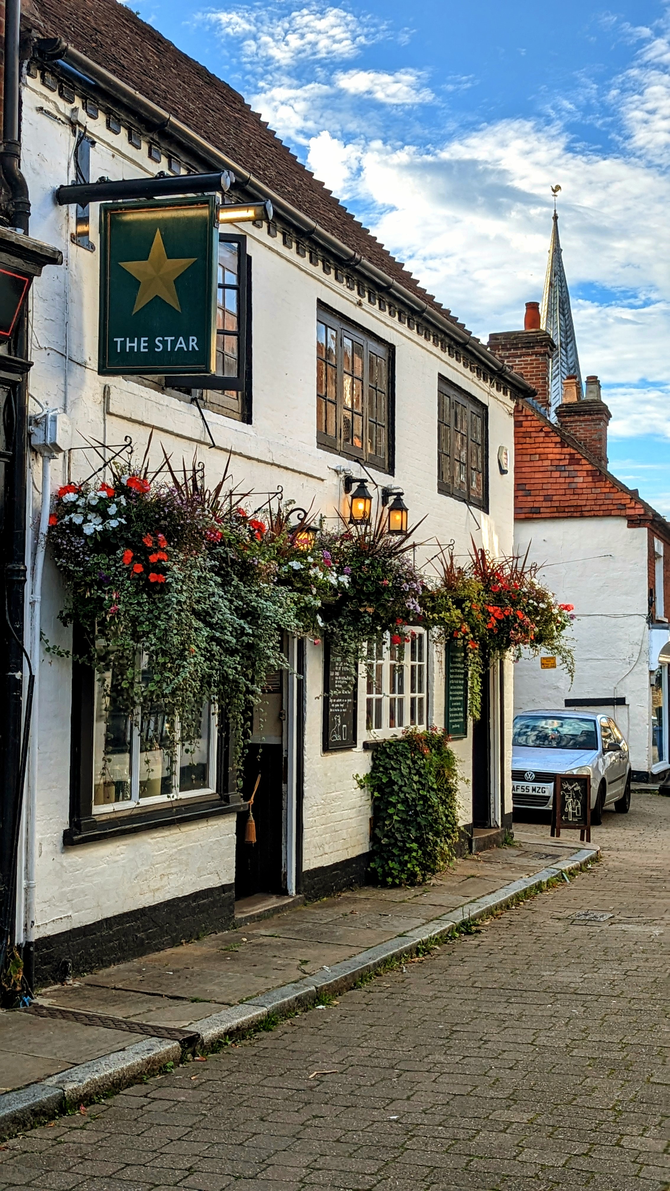 Not when you’ve got a rare sight of blue skies under which to enjoy a pretty Surrey town,