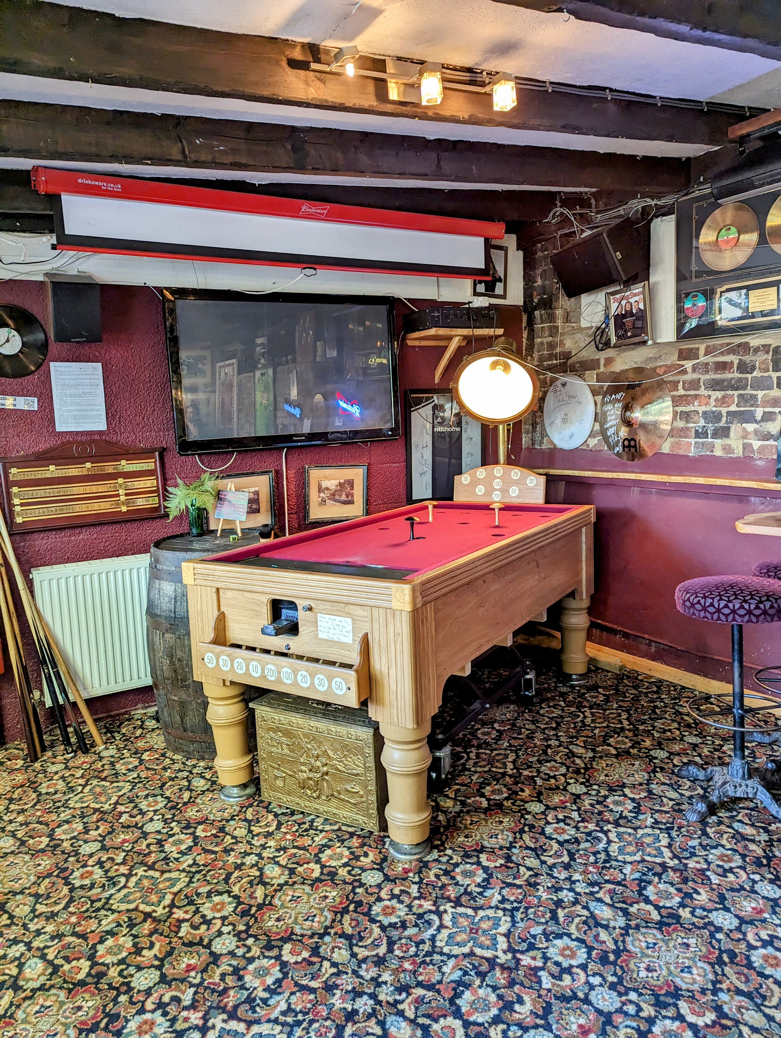 I was silently cursing Mrs RM for taking up residence in this games room rather than the bar, but then the drunk billiards players arrived. “I did NOT put that mushroom* back !” insisted the drunkest.