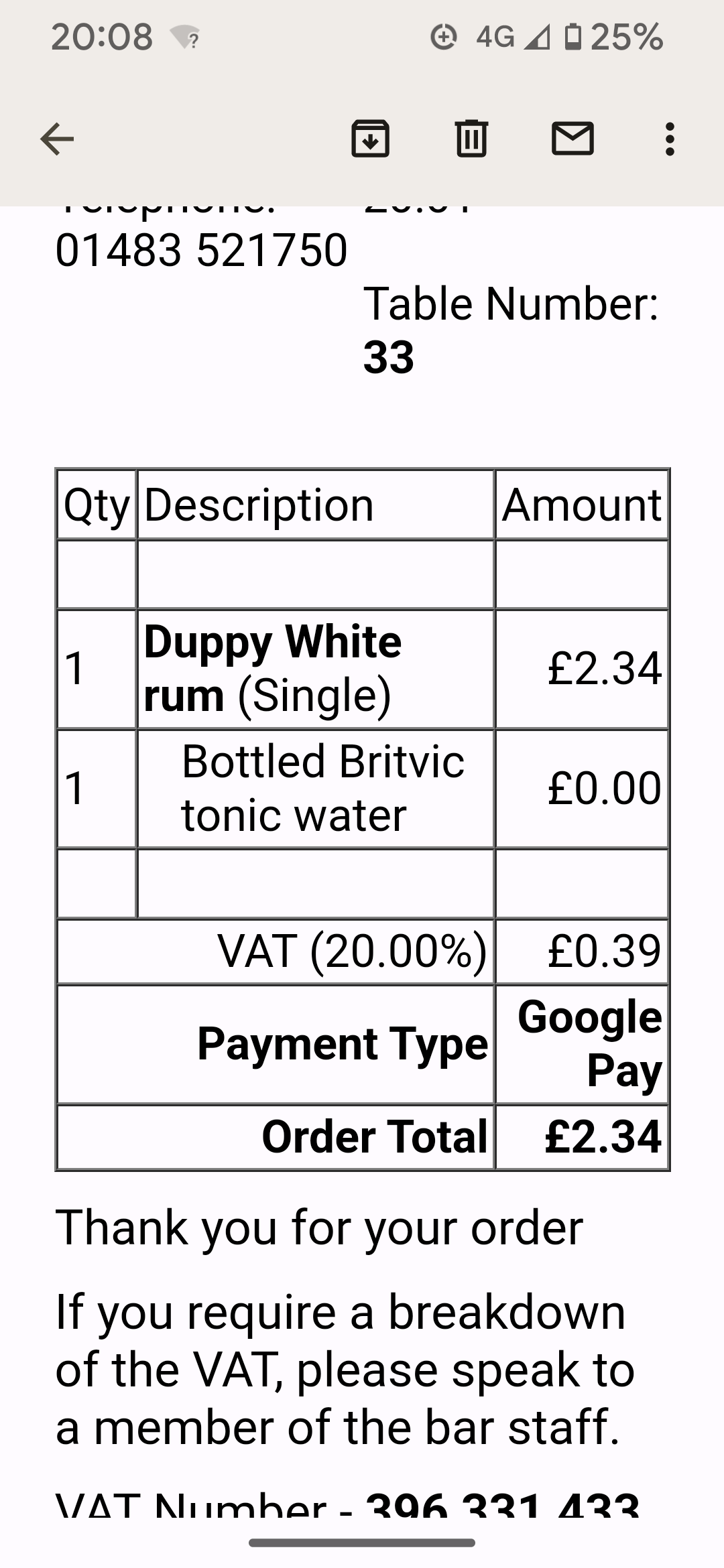 Oh, actually I’d typed in the wrong table number. The nice Spoons staff gave me another one, and rescued the fudge cask headed out as well.