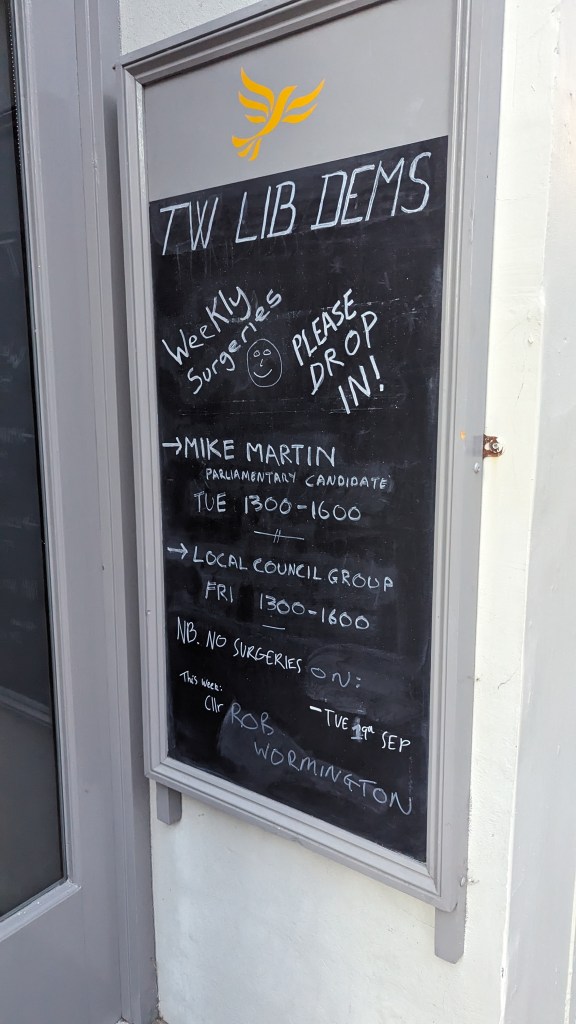 Sadly I’d just missed the Lib Dems weekly surgery,