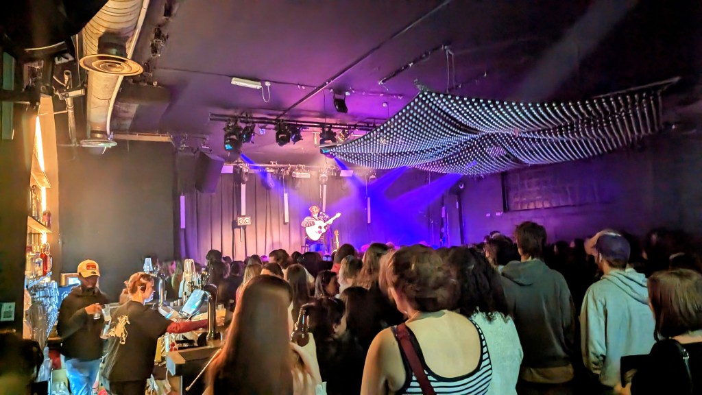 There’s a merch stand, and a bar.
