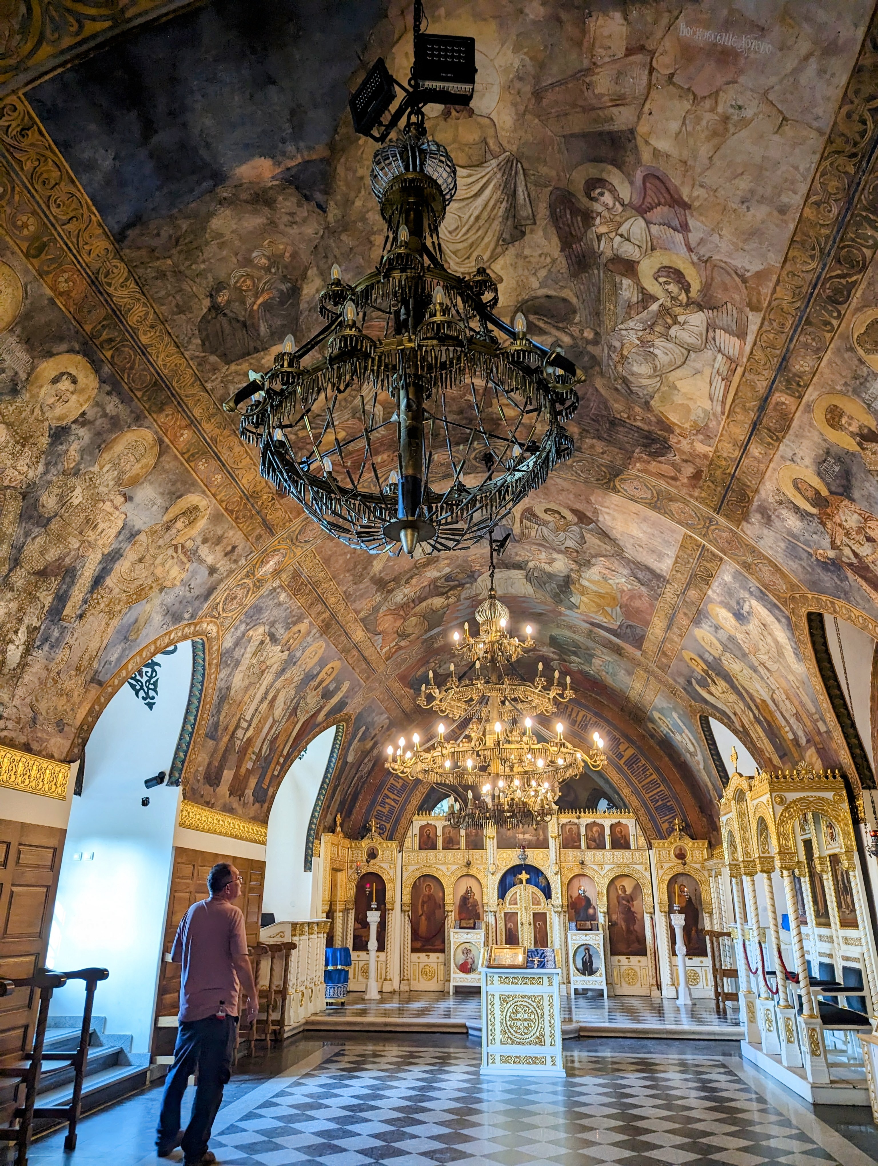 though not stunning enough to tempt the hundreds of visitors away from the trio of cafe/taverna/bar behind the church.