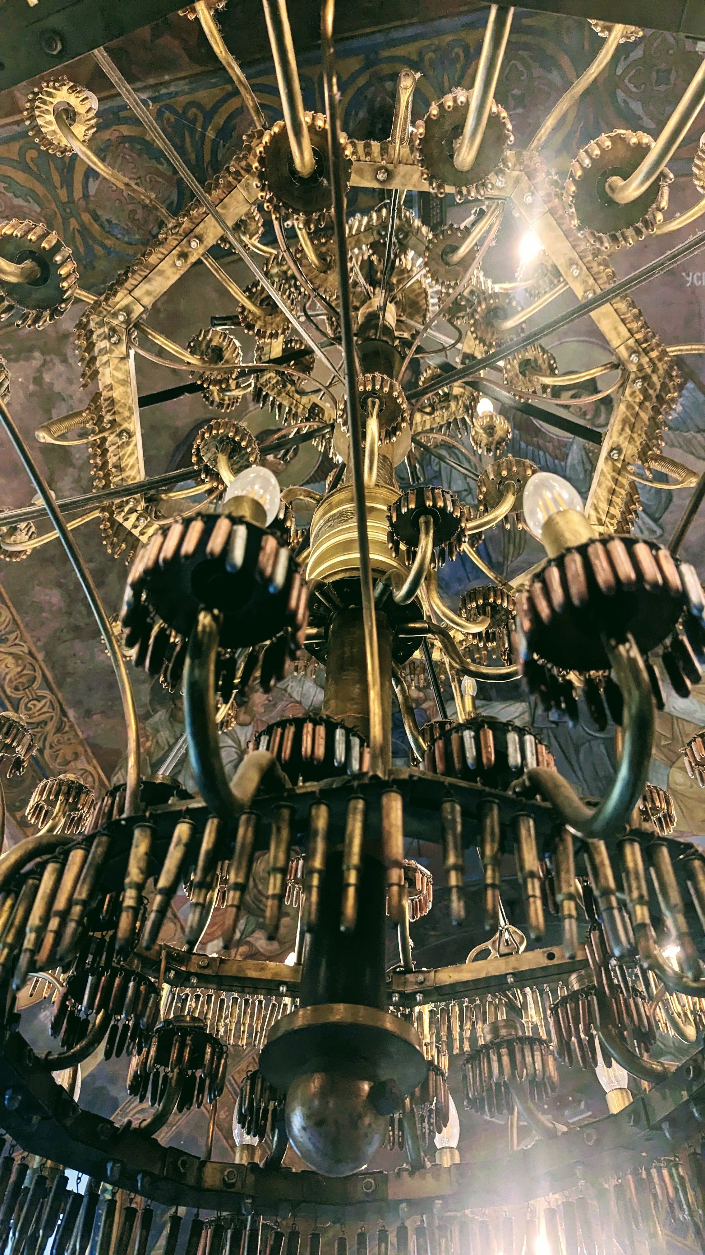 Ruzica used to be the garrison church, and after surviving a WWI bombardment those giant chandeliers were constructed from an array of bullets and shell casings.