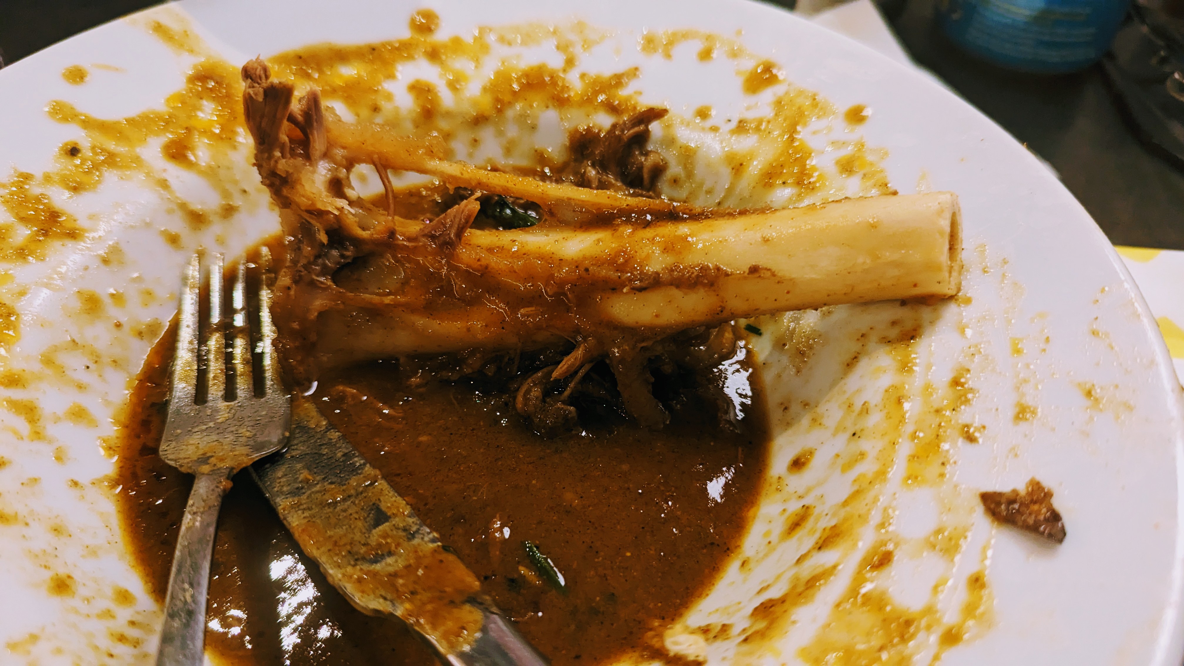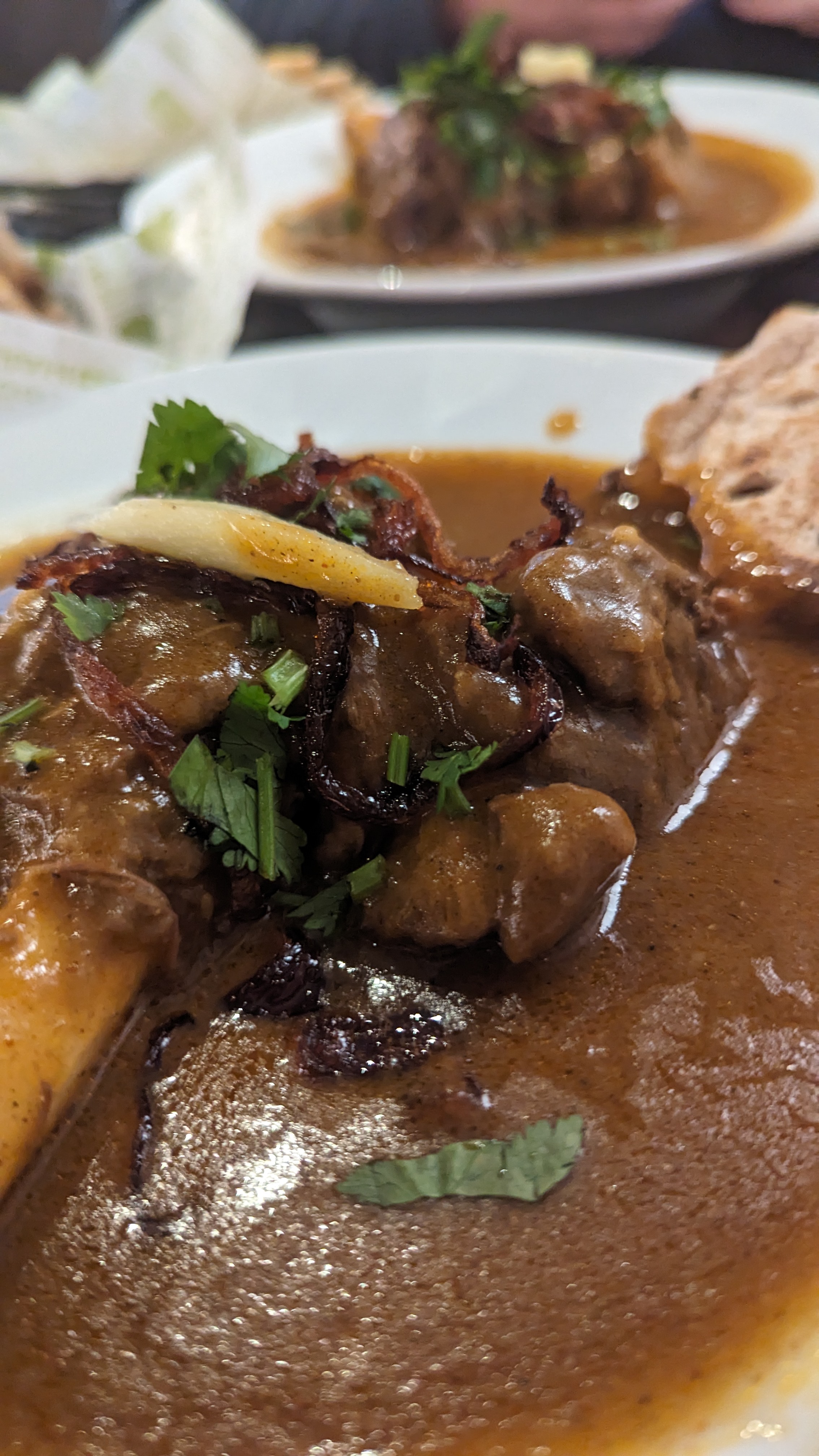 Asian families in their own booths feasted on burgers and pastas while we confidently went for the Lamb Handi on the bone with rotis and onion pakora. Pretending we know what we’re doing.