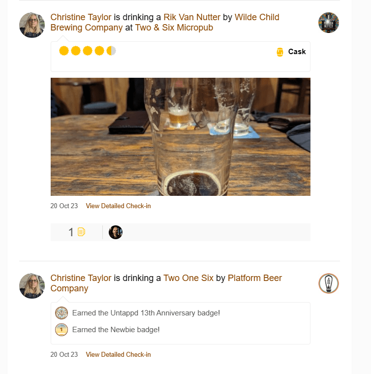 And here was Mrs RM, who I oft presumed to have some control over, writing about beer as if it mattered. And she’s the one who’ll say “I like my beer to taste like beer, me“. See how far you get with that attitude on Untappd, dear.