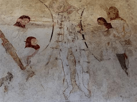 so here’s one of Mr Knott’s photos of a 14th century painting of St Edmund’s martyrdom.