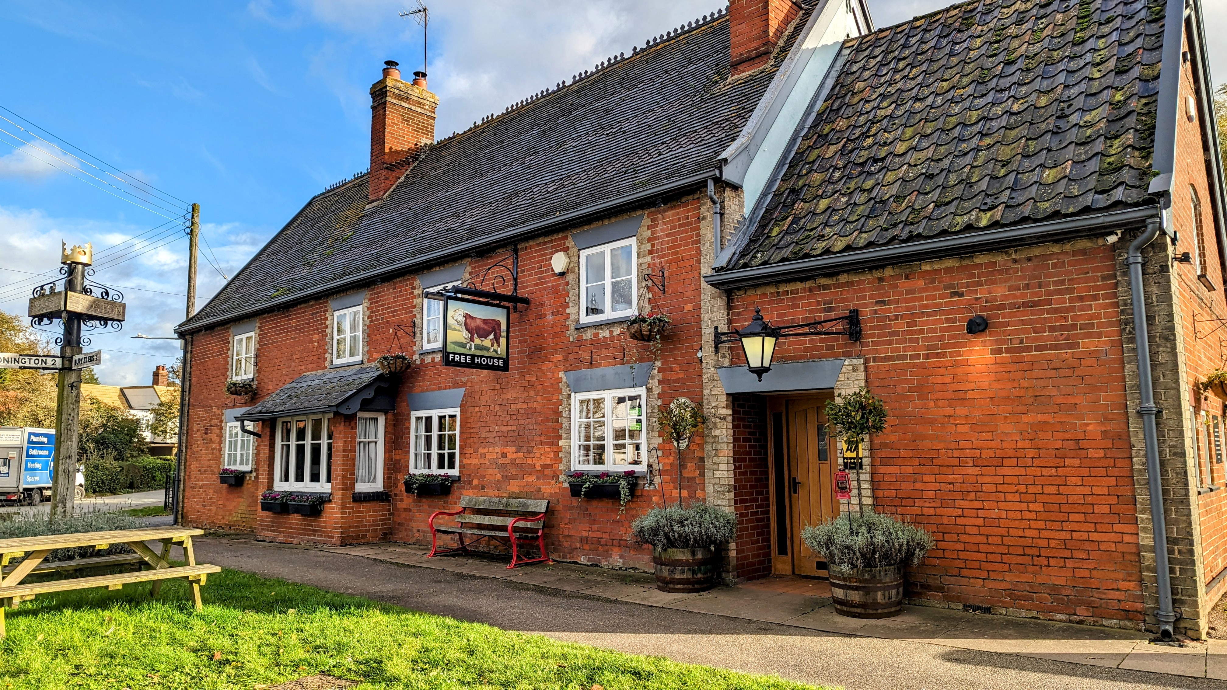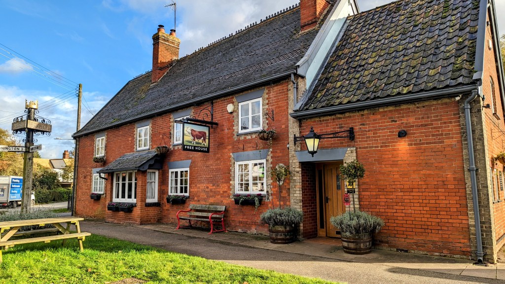 I visited the Bull, recently saved from GK ownership, after a quick whizz round a village of 952 souls, 76 tractors, 348 chickens and 44 suicidal pheasants.