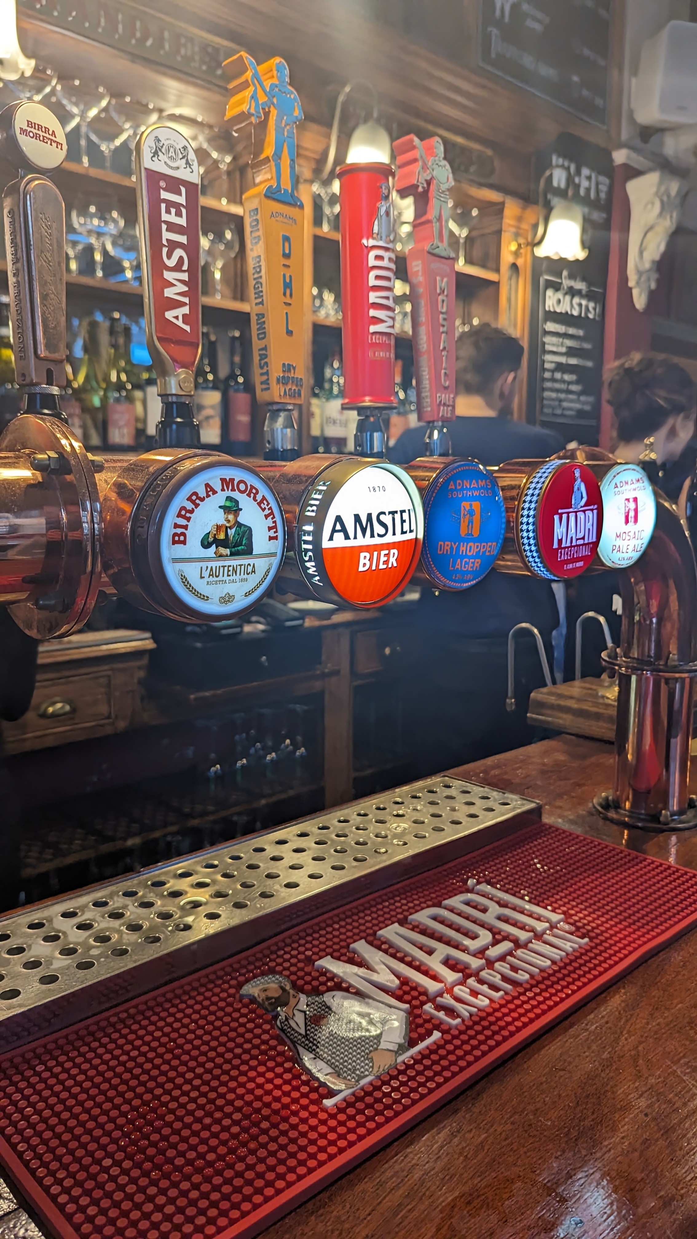 All the tables look taken, or reserved for diners, and seats line the bar blocking the pumps.