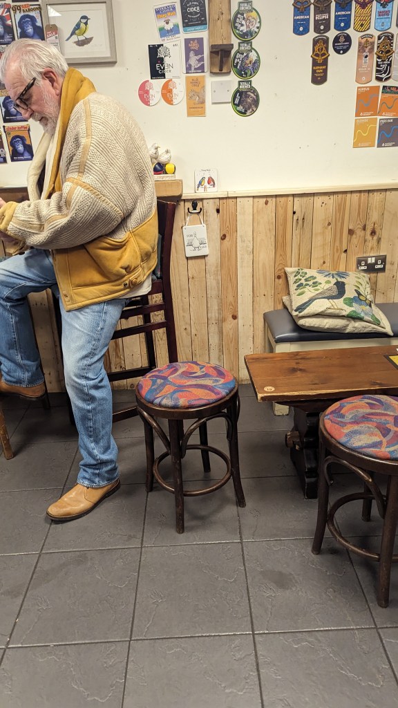 Oh look, a beer list for the day, how classy. The Old Boy who comes in after me is greeted with “Duchess, Jim ?” (it’s bound to be a Jim) and Jim replies in the affirmative. 8% pints, wow.