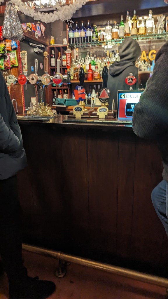 The Old Shoe, with Christmas market outside, was heaving at 2pm, and despite an excellent beer range the bar was just a bit too noisy for conversation. Plum Porter and, er, orange wine here.