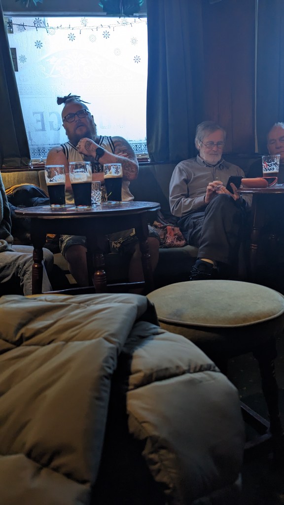 The most notable feature is that each table housed folk drinking the same beer. One Guinness, one lager, one Bass.