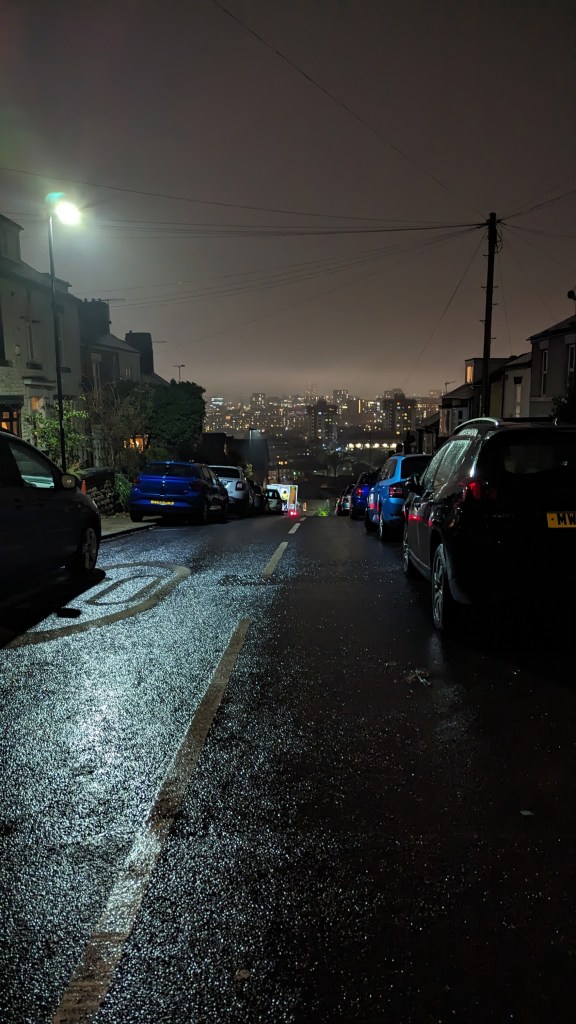 I took a walk up the hills just as the drizzle descended, and found myself at the foot of Birkendale Road.