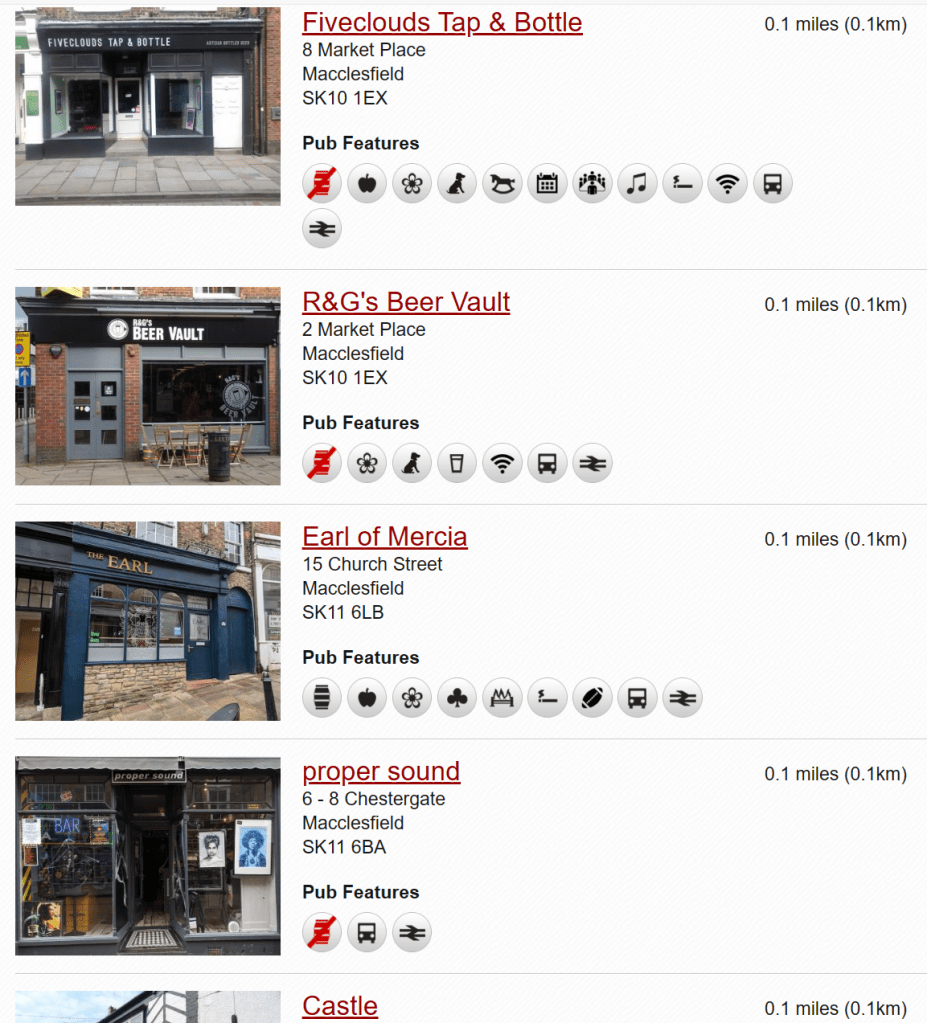 Type “Macclesfield” into What Pub’s search engine (go on, now) and the first entries to come up give you a particular perspective on the town’s bar scene.