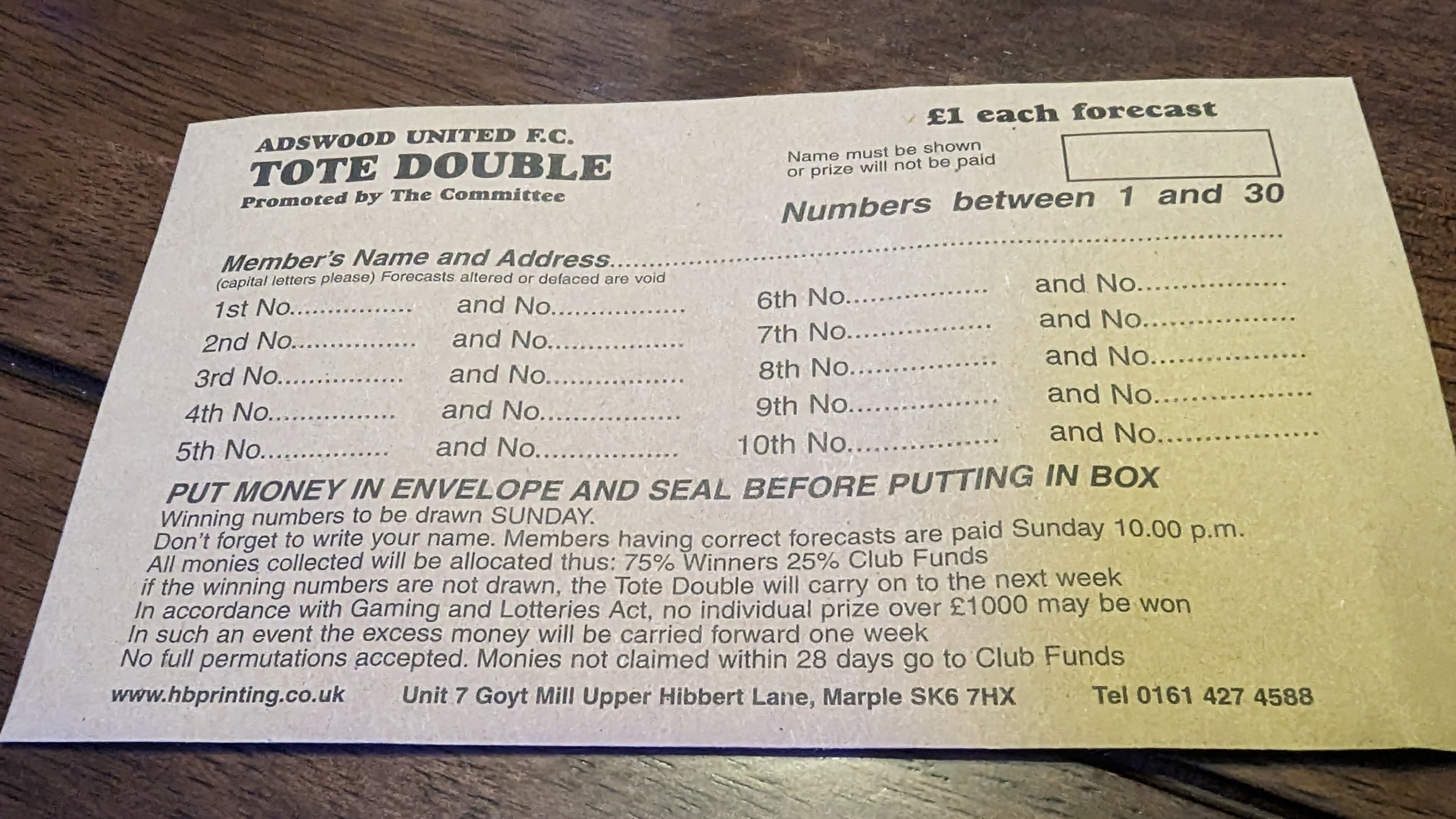 A bit of a dull slog from Cheadle Hulme station to the Cross Keys, taking you away from the refurbished family brewery dining pubs to an area of Stockport I would have called Adswood, on the sound legal basis that my pub is selling Tote tickets for Adswood United FC,