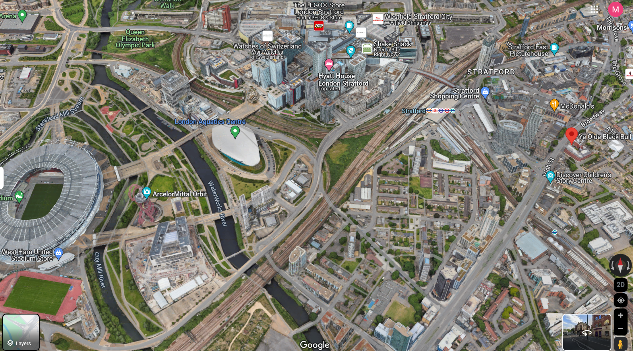 On the left you’ll see the home ground of the team whose supporters sing “Champions of Europe” without irony*, and good on the Hammers.