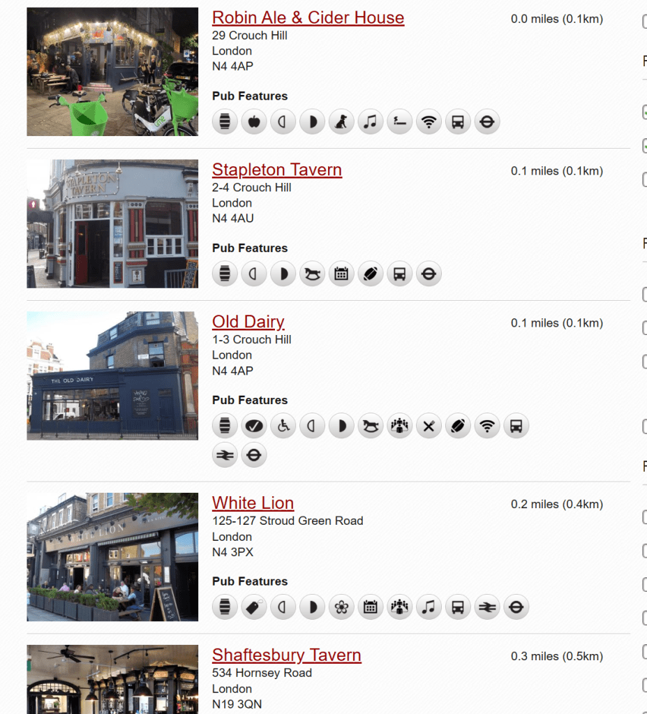 So 10 minutes later I found myself at Crouch Hill station, searching What Pub for the closest pub.