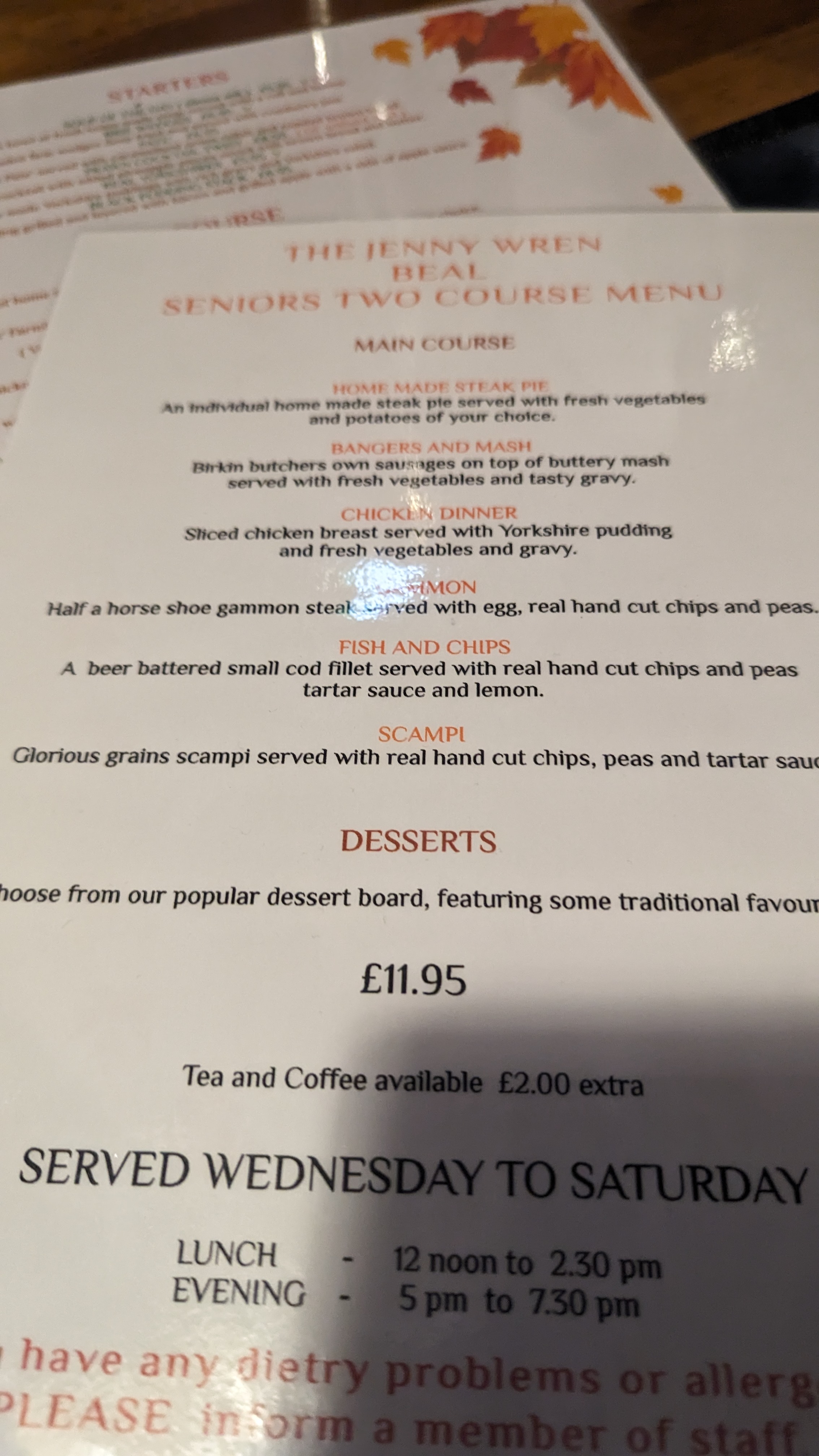 I didn’t notice it was a senior menu and the landlady said it’s for folk who can’t resist a bit of pudding after their mains !