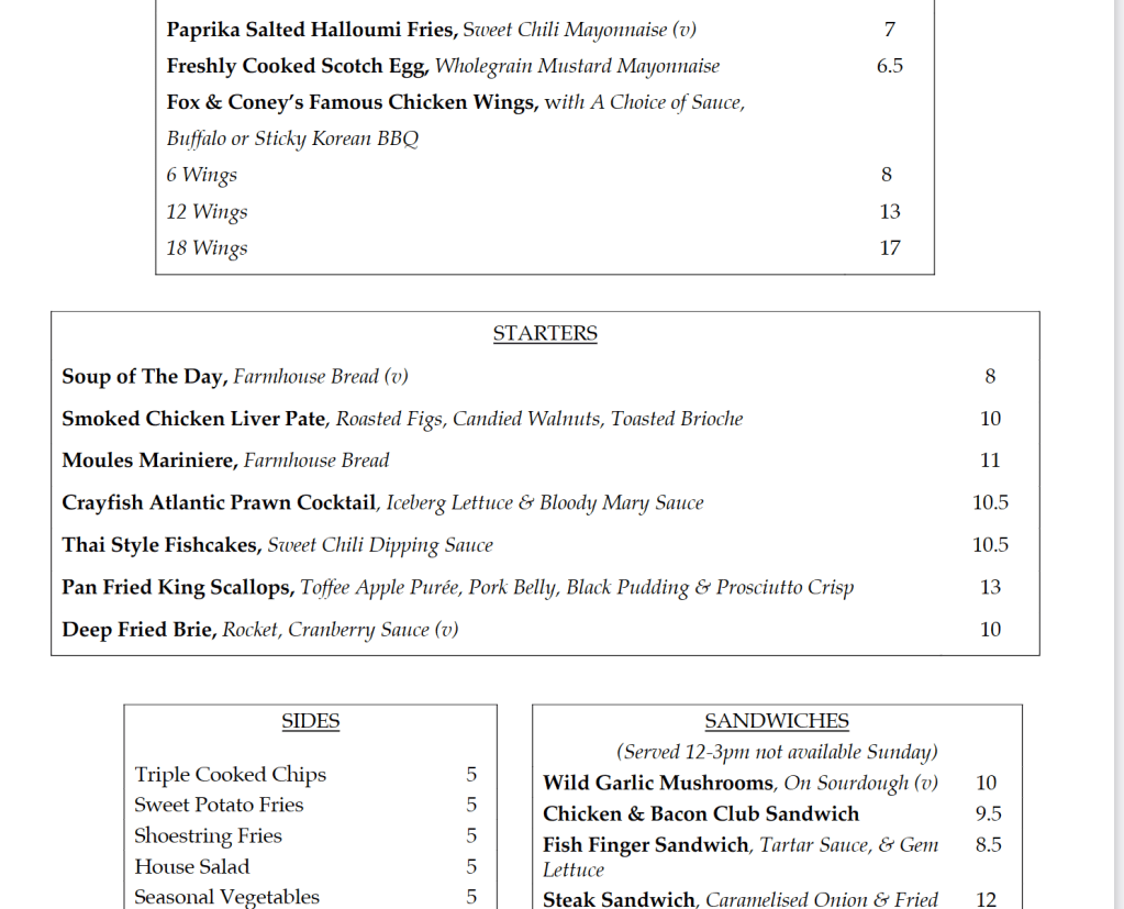 BRAPA ended up at the Fox & Coney over the road, dining on chicken wings (£8) and celery.
