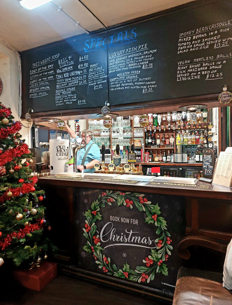 It’s a smart, cosy, pub with lots of great seating and a lady at the back who looks quite angry.