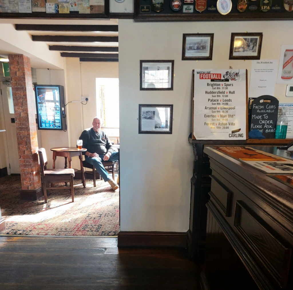 It’s a smart, cosy, pub with lots of great seating and a lady at the back who looks quite angry.
