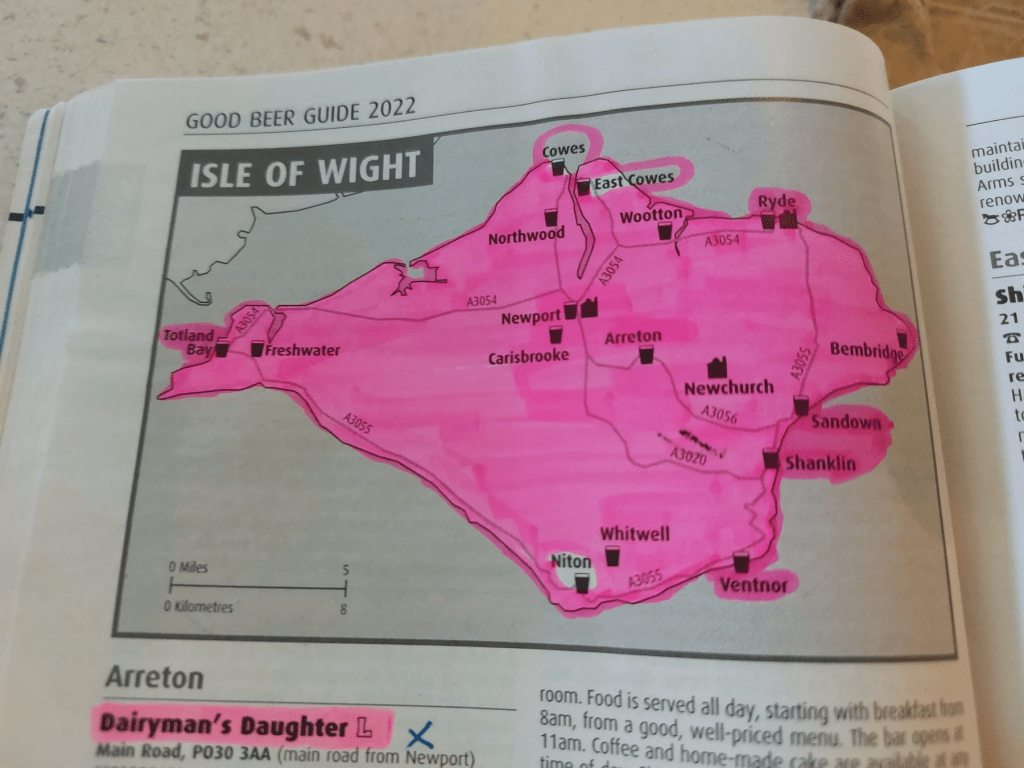 I’m not saying the pubs are rubbish, there’s a fair few unpretentious boozer straight from the South London/Kent playbook. And they get extra points for producing a lovely printed guide to the pubs in 2019, the Gutenburg printing press having finally reached East Cowes the year earlier.
