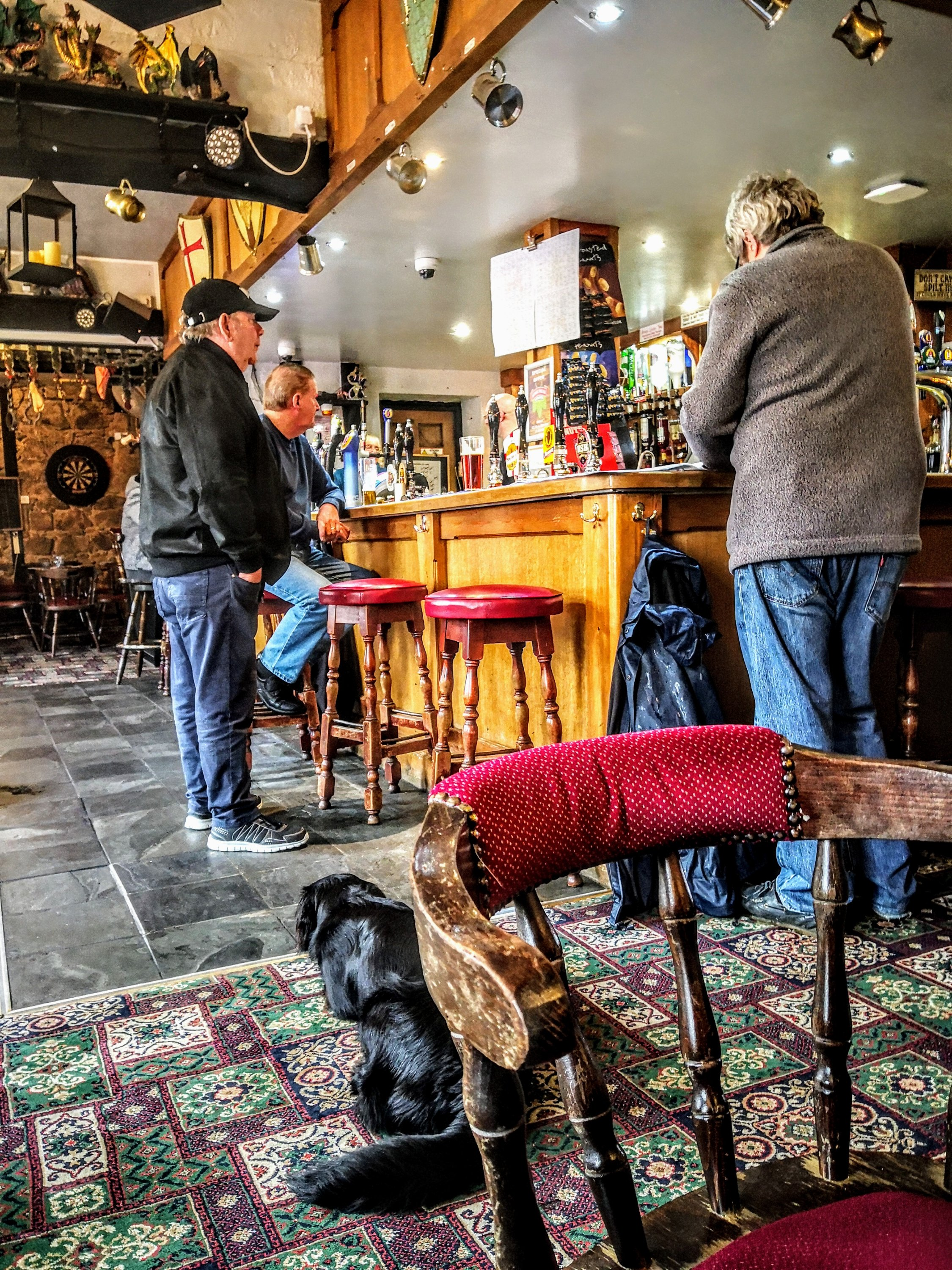 Just lots of blokes talking nonsense and coming and going for a fag and the sound of pumps being pulled.
