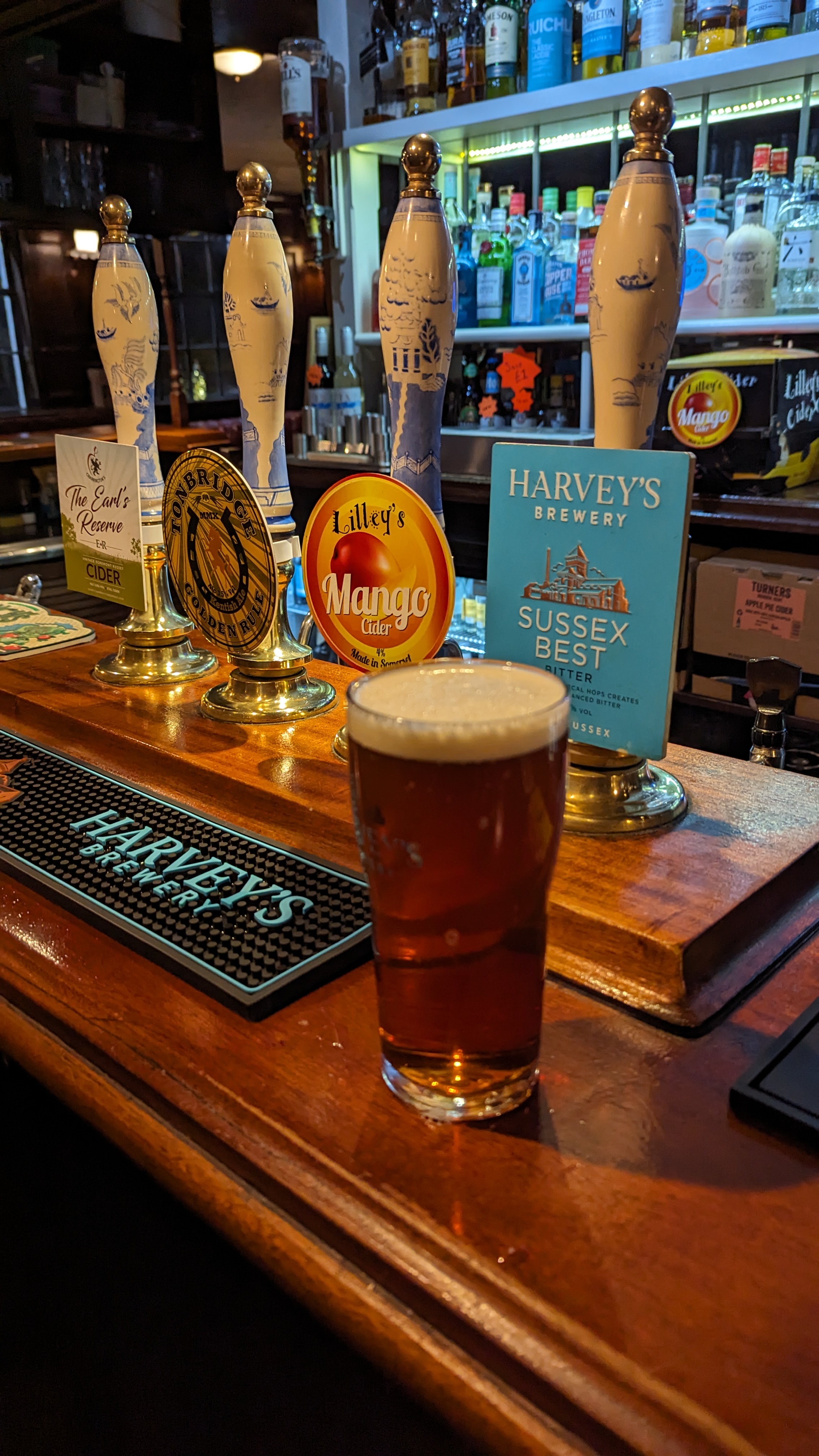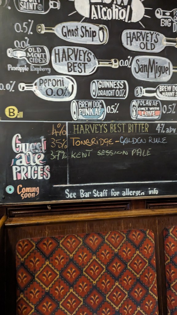 Harvey’s and Tonbridge, and two ciders, if you’re allowed to call Lilley’s cider. I neither know nor care, just as I’m not really bothered if there’s a non-alcoholic version of Harvey’s Best.