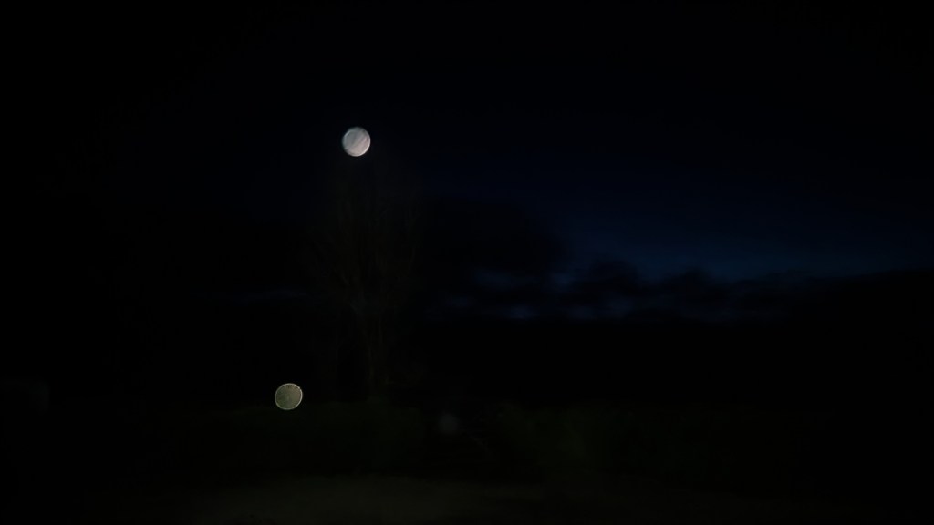 Outside, in pitch black, I could see a second moon.